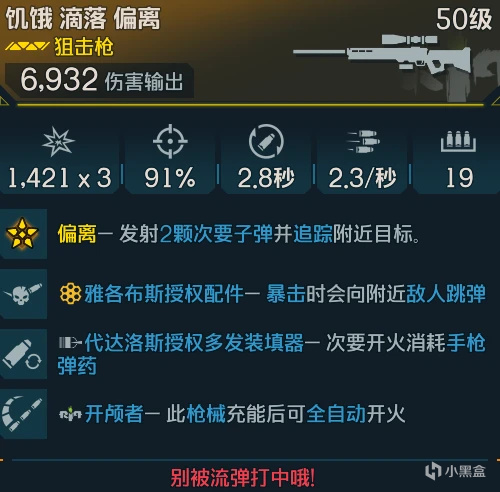 今天話不多說,直接就上正題,推薦的這把槍叫偏離,是一把狙擊槍,因爲它有個特性,發射兩個次要子彈並追蹤敵人,然後具體詞條見下圖,對付小怪只要按住左鍵不鬆手,幾秒就發現清圖了。