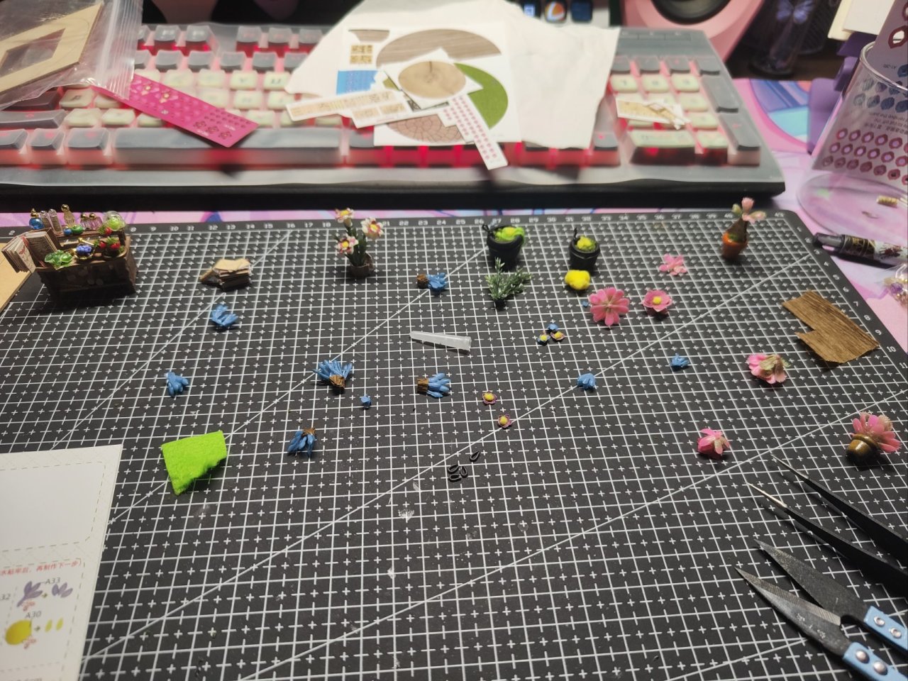 雖然看起來材料挺少,但是一些花瓣啥的不規則形狀,酒精膠老喜歡拉絲!!!
