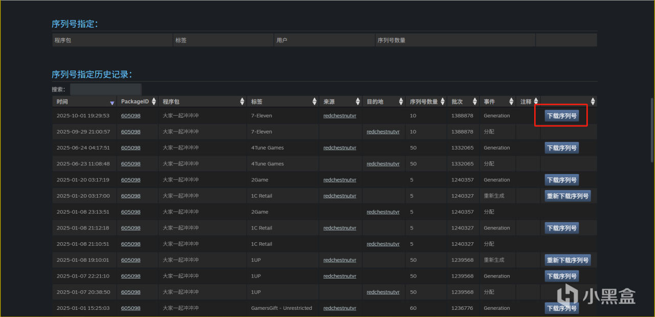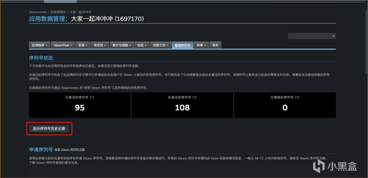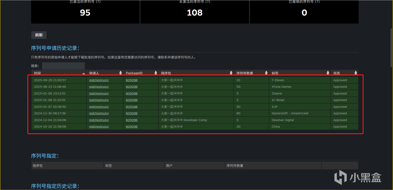 下面会显示我们申请了的序列号激活数量与未激活数量。(我们一共也就申请了200个,已经发放了100个了)