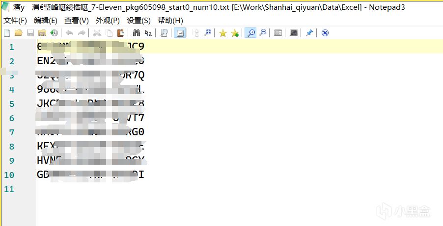 TXT文件里面就是长这样的。竖向排列的CDKey们