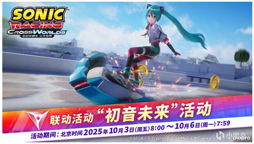 熱銷中的《索尼克賽車 交叉世界》10月3日今日起,將舉辦聯動活動——“初音未來”活動。活動期間收集活動積分,即可獲得遊戲內道具。