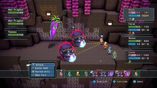 這是我一位認識很久的網友強力推薦的,作爲一款致敬ff5的JRPG,他完全捨棄了劇情,把精力全部放在了戰鬥和探索上,探索方面,遊戲是通過多種方式強化你的跳躍能力,來一步一步擴展你的行動範圍(沒錯包含跳跳樂)。戰鬥方面則是傳統的atb回合制戰鬥加上仇恨系統,在這個基礎上你還能查看敵人的詳細信息和準確預覽敵人下一次行動。他要求玩家必須合理規劃資源和戰術。職業上分主職業加副職業以及被動點數,遊戲的漢化是在創意工坊,搜索簡體中文點擊訂閱即可。
