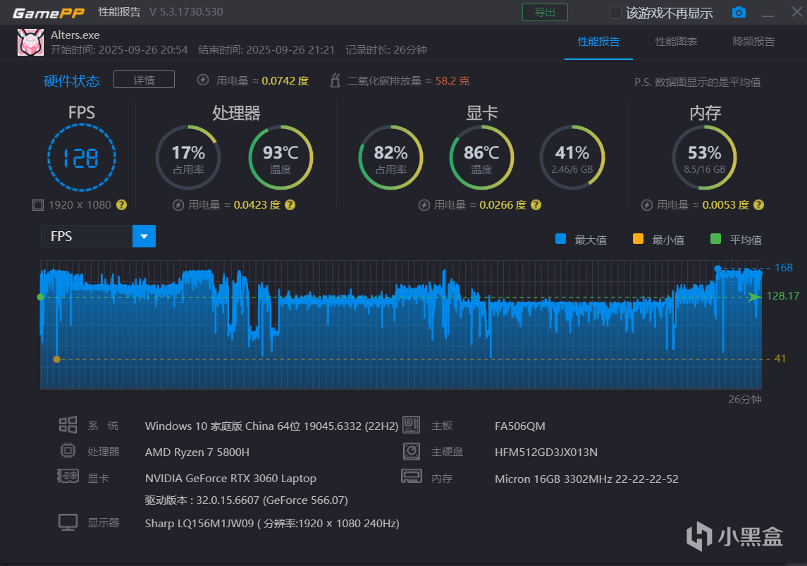 虽然游戏角色在战斗以外的部分都是像蔚蓝档案一样的大头娃娃,但是本作的性能表现十分丝滑,华硕天选3060laptop加上5800h能做到平均帧128,所谓降频只是正常广东天气吹风扇带上经典amd高功耗撞温度墙降频了,你说我为啥打开软件出来测?