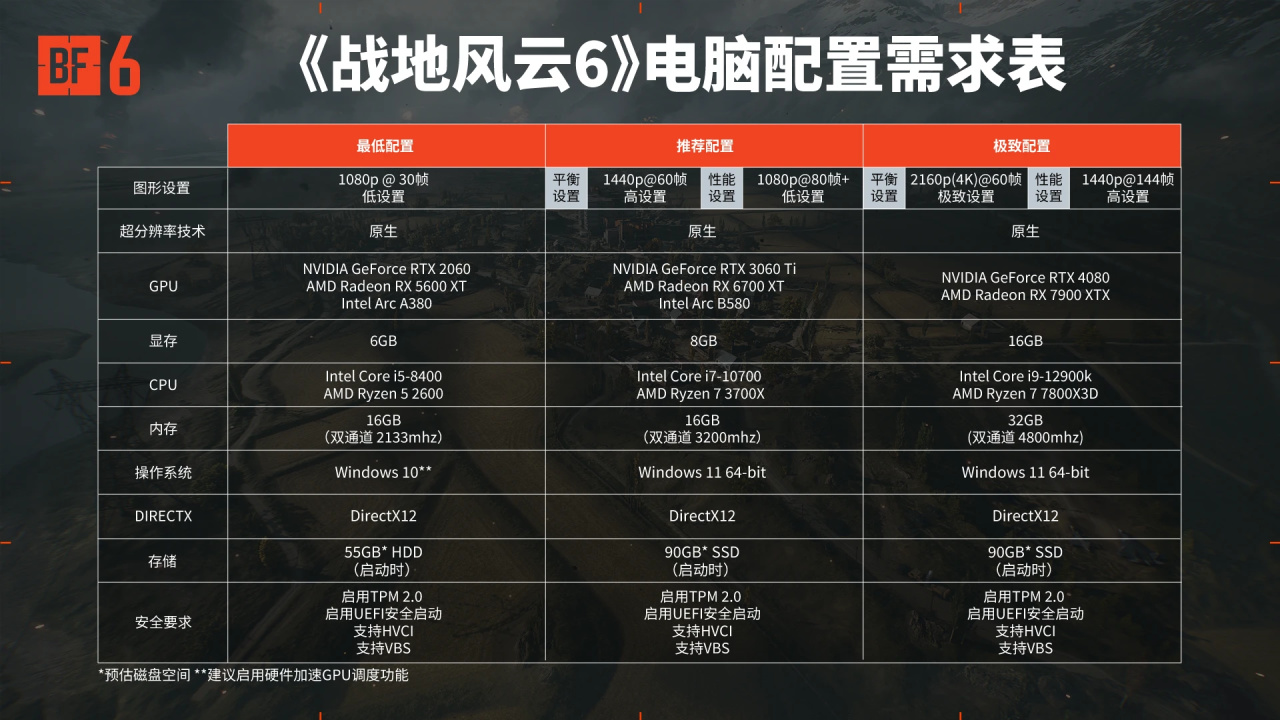 显卡:RX 6700 XT或RTX 3060 Ti或Arc B580