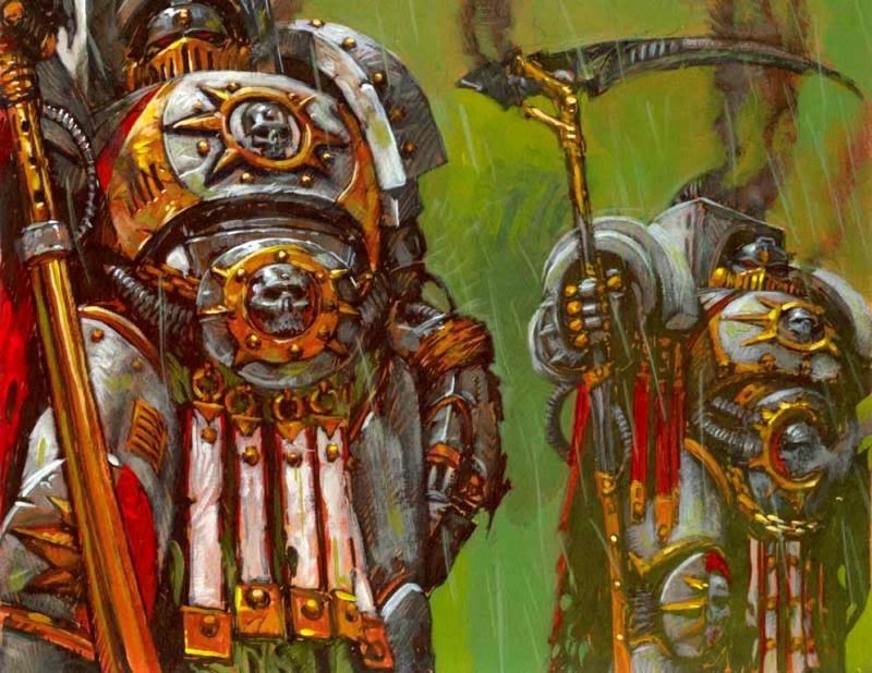 - 领主亲卫:许多寿衣终结者是瘟疫领主的私人卫队,他们与领主的腐化程度最深,甚至能在亚空间中直接召唤纳垢的瘟疫恶魔支援。