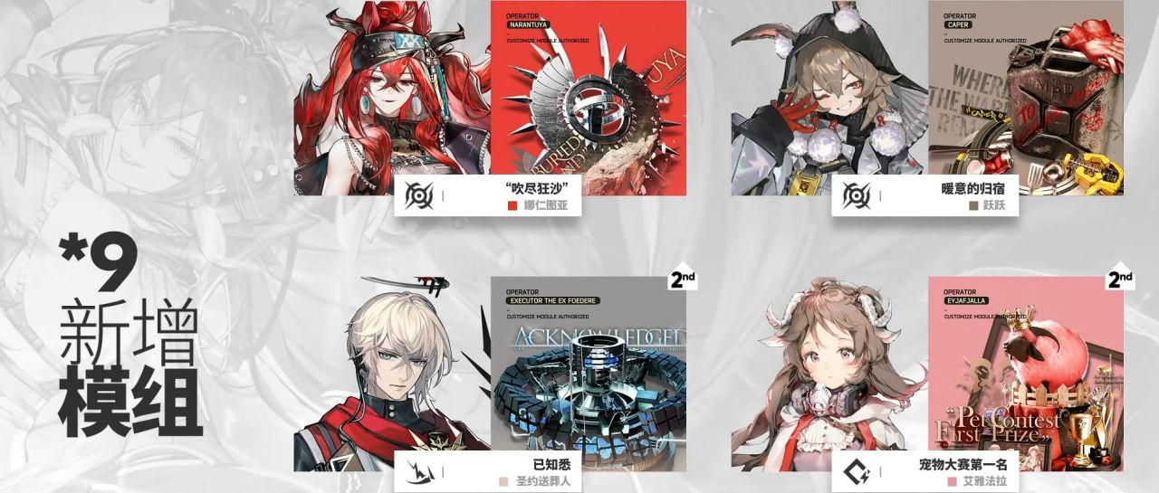 3個新幹員模組和迴環射手模組。以及送葬人、小羊、電弧第二模組。