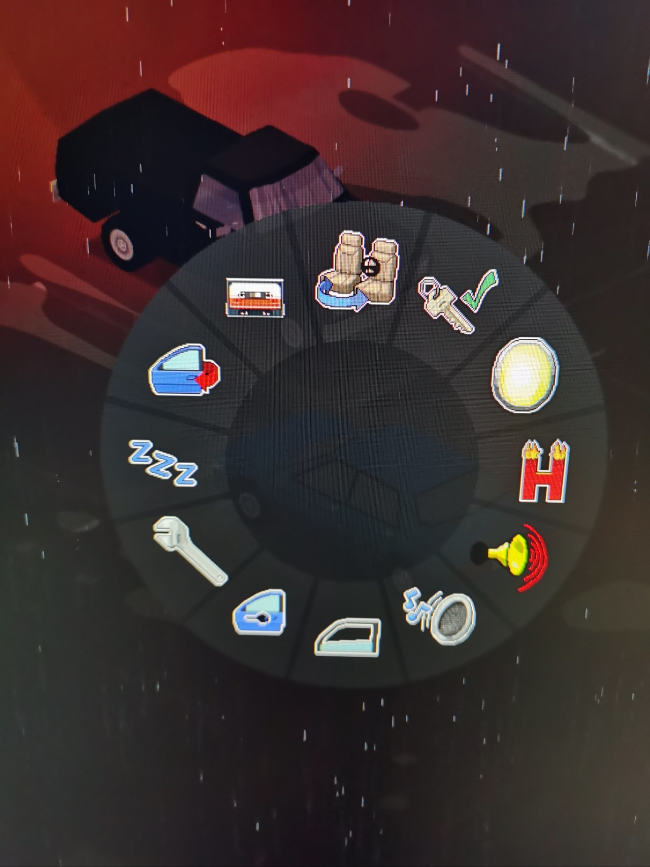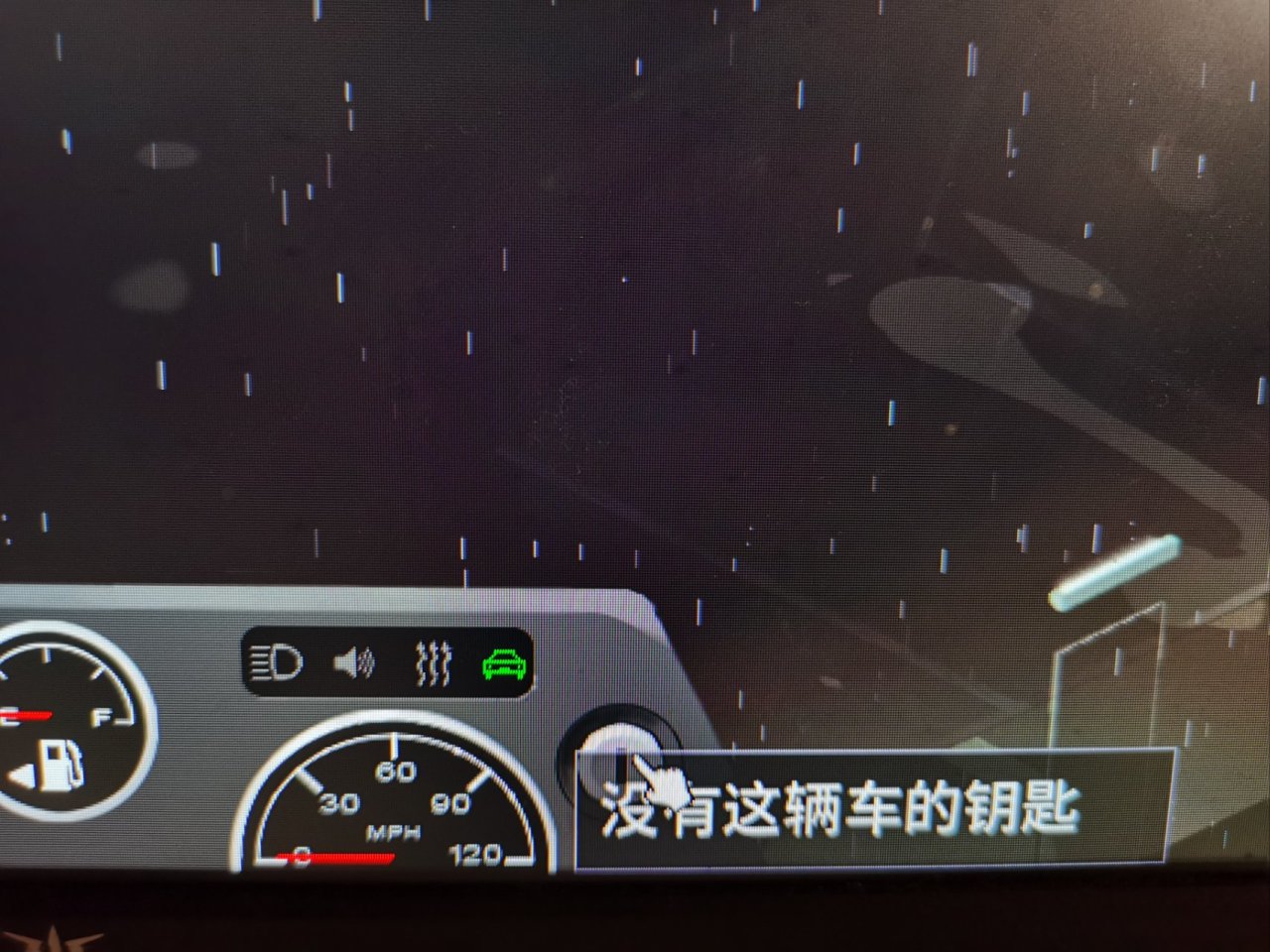 在車上也是上鍵喚出菜單,包括換位置、短接、開關空調車窗等,有鑰匙的話我只發現只能用手柄點擊車輛儀表盤操作,掛拖車也在這個界面,沒找到合適的不拍照了。
