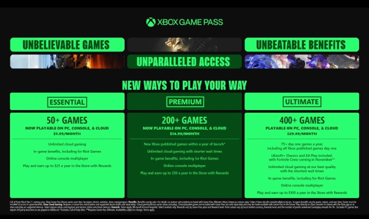 微软此次将XGP服务细分为多个层级。基础版Game Pass Essential每月9.99美元,包含Xbox、PC和云端服务及50多款精选游戏。高级版Game Pass Premium每月14.99美元,在包含基础版所有内容外,提供Xbox第一方游戏(最多延迟一年上线,但不含COD)。PC Game Pass也从11.99美元涨至16.49美元,理由是加入了Ubisoft+ Classics。而真正引发争议的是XGPU的大幅涨价,从每月19.99美元飙升至29.99美元。