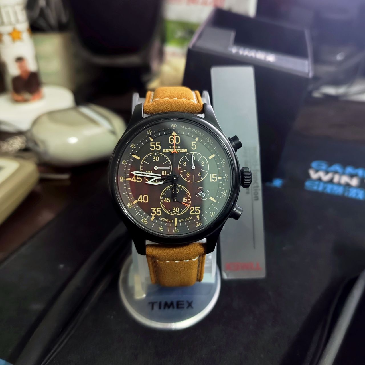 天美時ga2000,淘寶售價600多,我的十八歲生日禮物,當時在得物買着只需要440,可能是目前有點缺貨,建議降價購買,440這個價格還是很有性價比的。這款表唯一優點就是顏值高,碳纖維錶殼,三眼設計,同時左邊的轉輪可以滴滴滴的轉,很好玩。除此之外多餘功能基本沒有,電池也很不耐用,只有三年。我的ga100的電池用了8年才換,不知道它多餘的電用去哪了