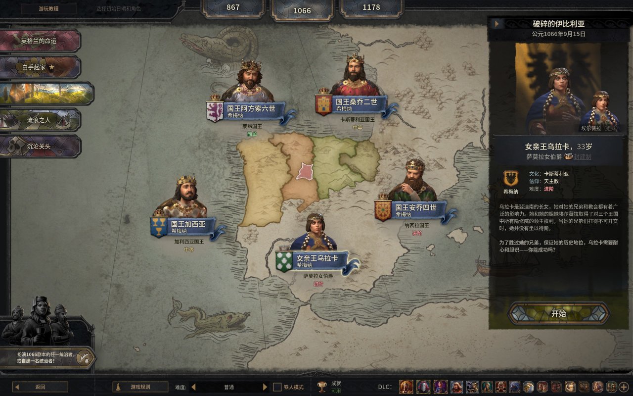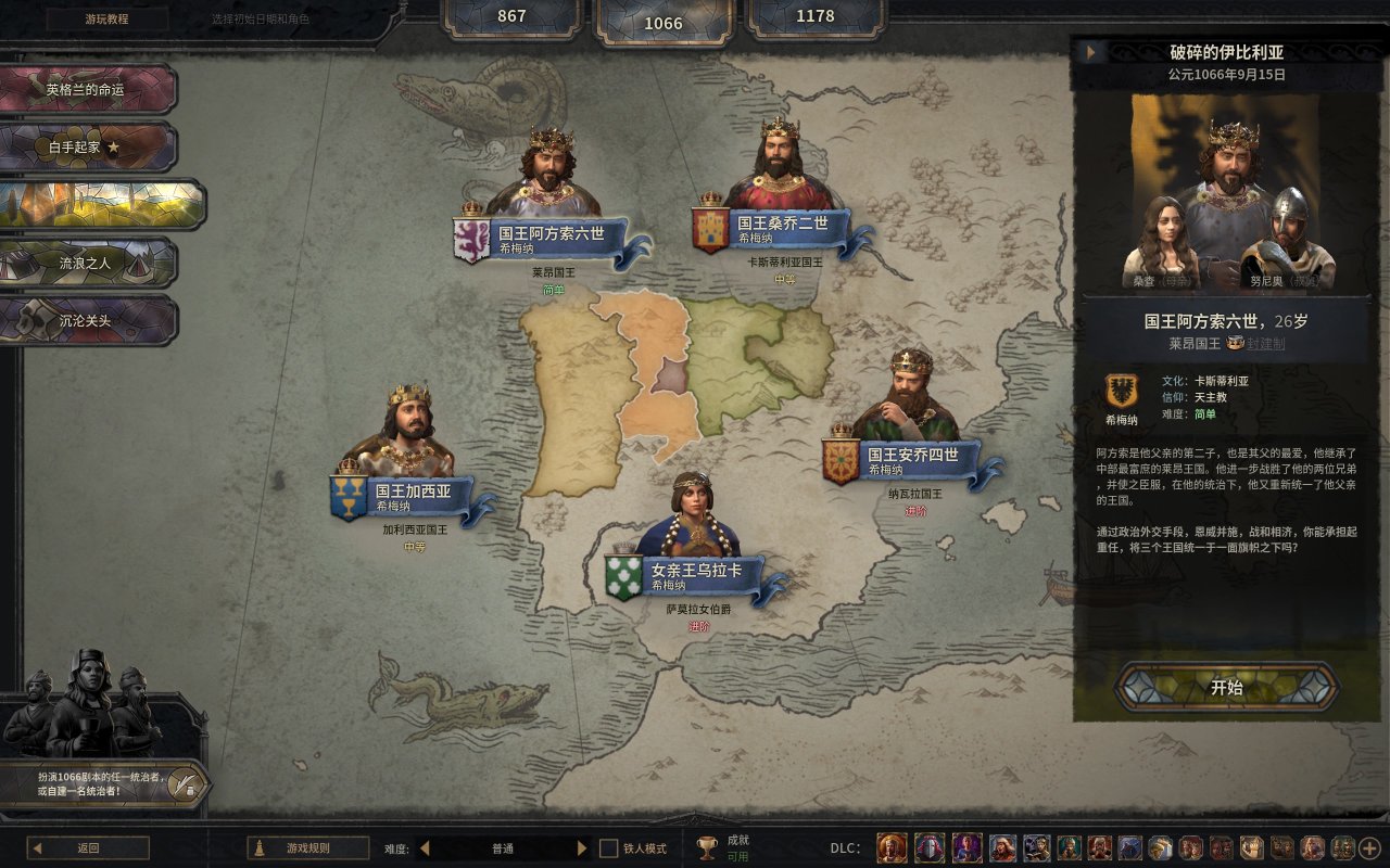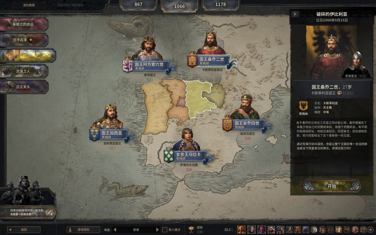 攻略;作为西班牙地区弱小的统治者之一,必须联合盟友击败桑乔二世才有空间发展,而王国级头衔是你唯一能够拉到良好的盟友的关键。