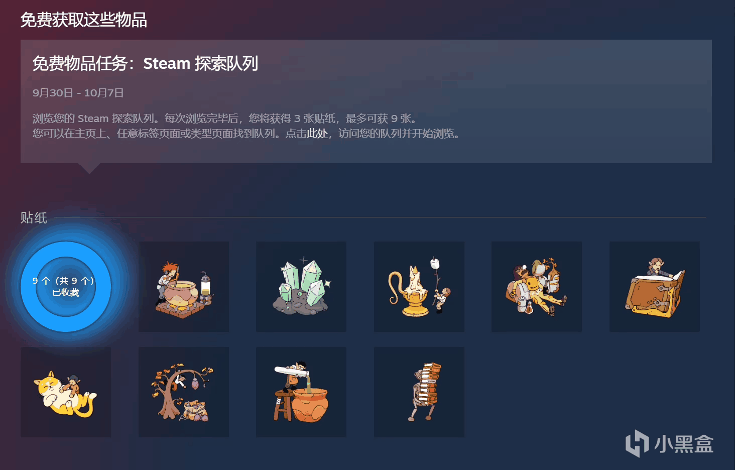 ②打開Steam,在Steam商店頁面往下翻,翻到探索隊列那裏,根據指示瀏覽即可獲得!