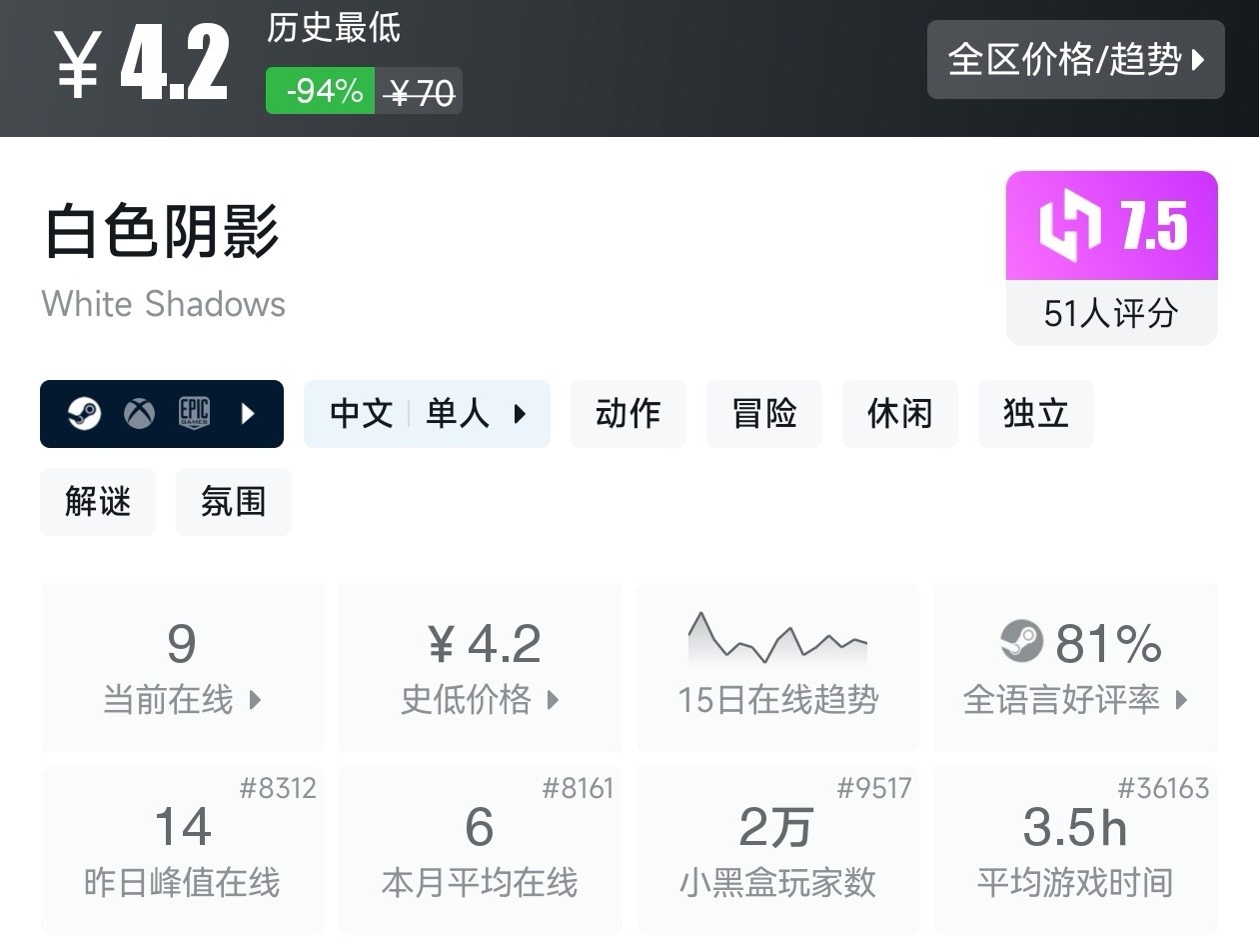 大家好,沒錯,又是我,你們的老朋友亦然,今天,就是國慶第四天,秋促第五天了,不知道各位盒友買的遊戲有多少了,秋促這次只持續一週,所以就只有幾天時間了,這期帖子,就帶各位盒友看看這次秋促中那些0.5折的遊戲,比一折力度還大,買到不虧,我將爲各位進行一個彙總,希望我的彙總,能夠幫助各位盒友挑選心儀的遊戲。