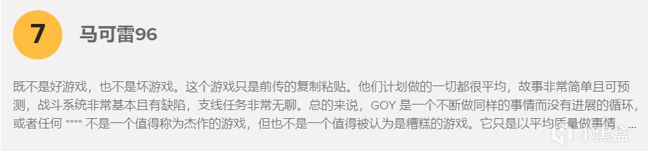 给出好评的玩家认可其出色的画面表现,认为战斗系统与剧情极具吸引力,开放世界充满活力;中评玩家则指出,尽管游戏具备上述优点,但创新度不足,缺乏新鲜感;差评玩家则将其与前作《对马岛之魂》对比,批评玩法过时,且主角 “笃” 的人设难以获得喜爱。
