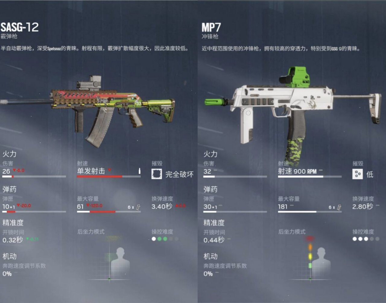 主手武器:SASG-12(毛喷),MP7