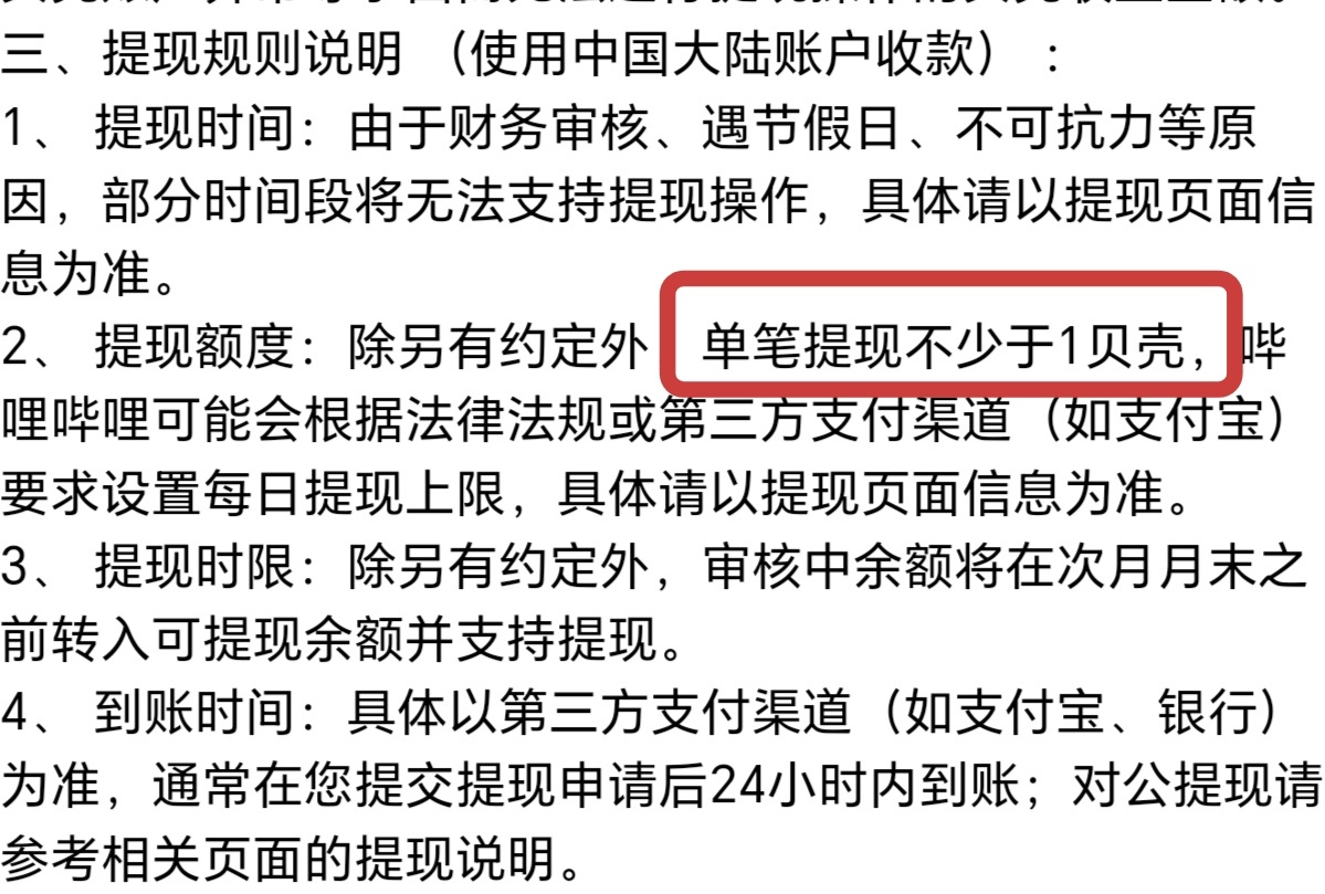 今日刷帖的时候,看到有人说B站的贝壳提现规则更新了,然后本人就去试了一下,还真是这样,困了半年的50块终于到手了