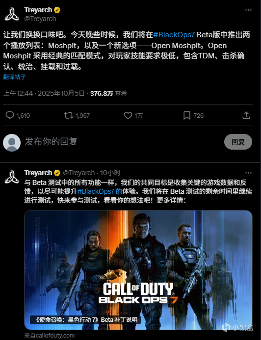 此次更新也是開發組在 Beta 期間持續調試的又一項舉措:此前他們已經對擊殺時長、武器經驗等進行了改動,並加入了殭屍生存、雙倍經驗等臨時活動,意在收集更多數據與玩家反饋來打磨最終體驗。社區對 Open Moshpit 的反應總體積極,不少玩家表示這讓多人對戰迴歸到更輕鬆的節奏。