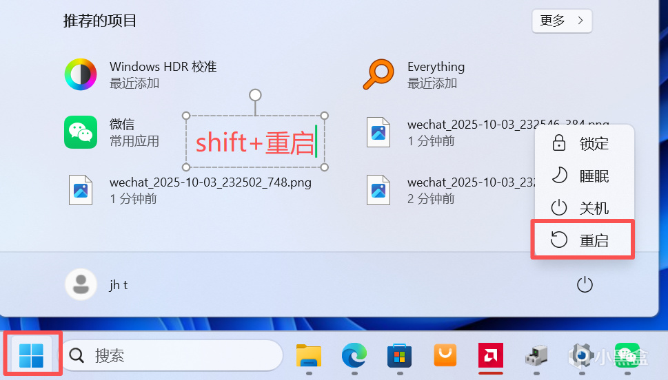 4.重启电脑到安全模式,键盘SHIFT按下+重启