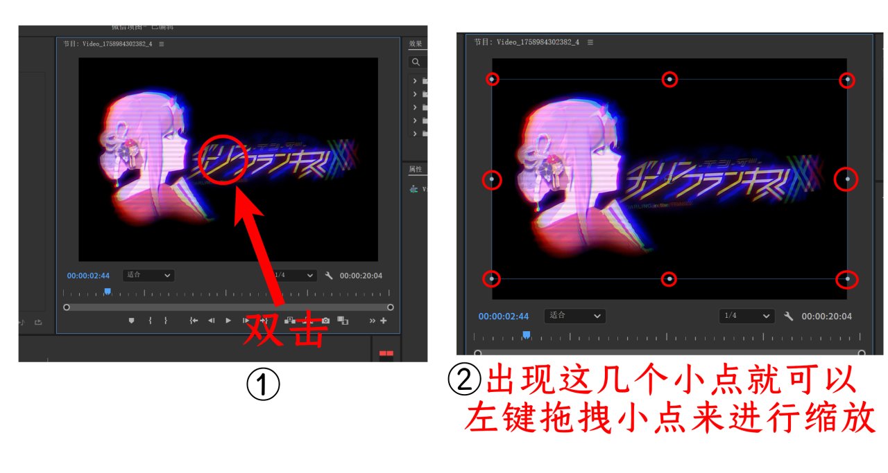 在中间“节目”处双击视频就可以对视频进行缩放等调整,具体根据个人需求来设置