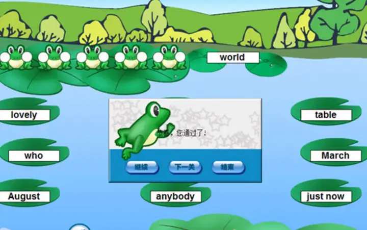 当时用的金山打字软件,里面的打字游戏我只玩过两个,第一个是青蛙过河,按照对应的词打出来就可以让青蛙过河,这个我小时候就觉得很无聊,只能说清心寡欲: