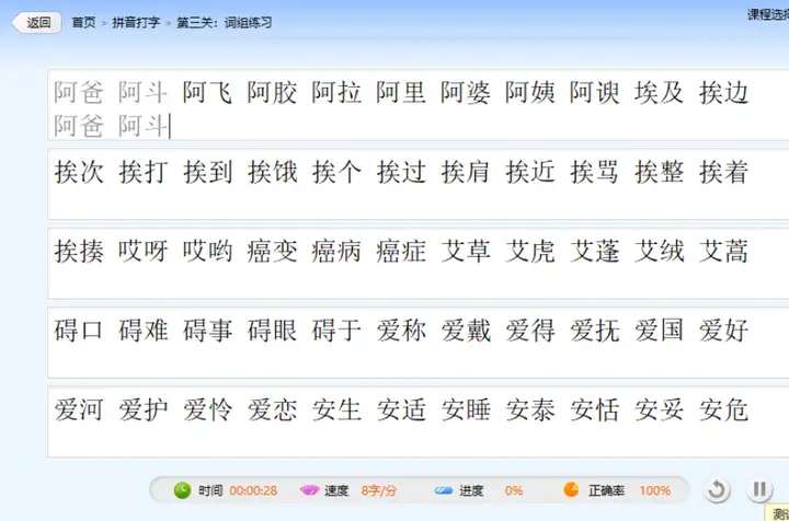 后面的课程等我们都熟练了,就给我们安排作业,去打一段文字,打完之后喊老师看一下,就可以去玩打字游戏了,完成的越早可以玩打字游戏的时间就越多,