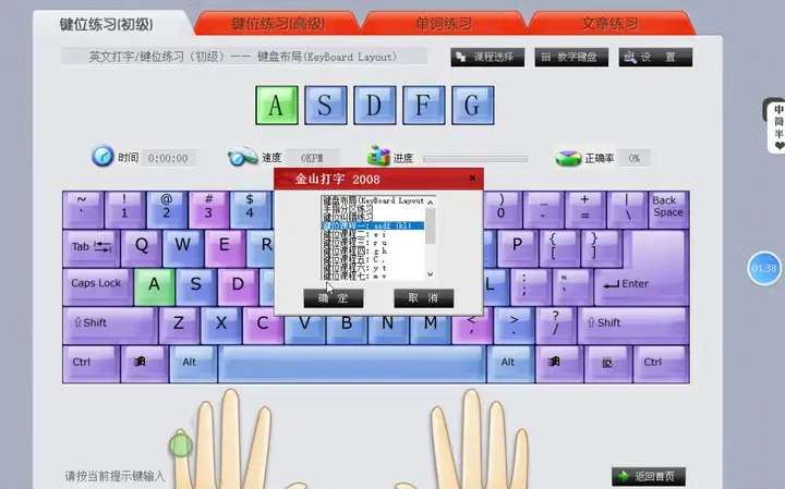 第二种情况就是日常的微机课,老师会教我们用打字软件 ,我印象里应该是金山打字,一开始就是一些普通的认识键盘鼠标