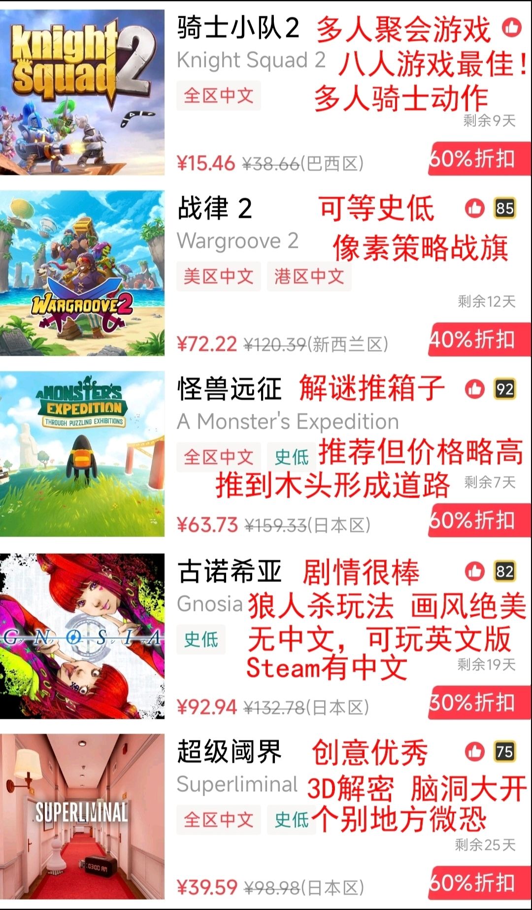 近期蒐羅了40款史低遊戲,總結的文字冒險比較多,可等史低入手 以上都是我個人推薦
