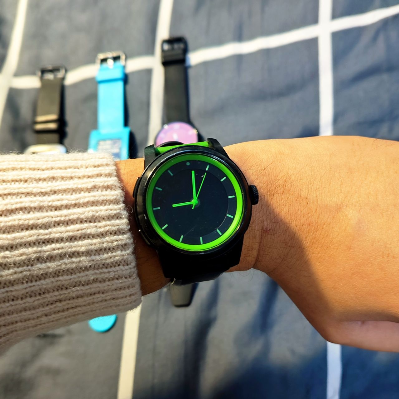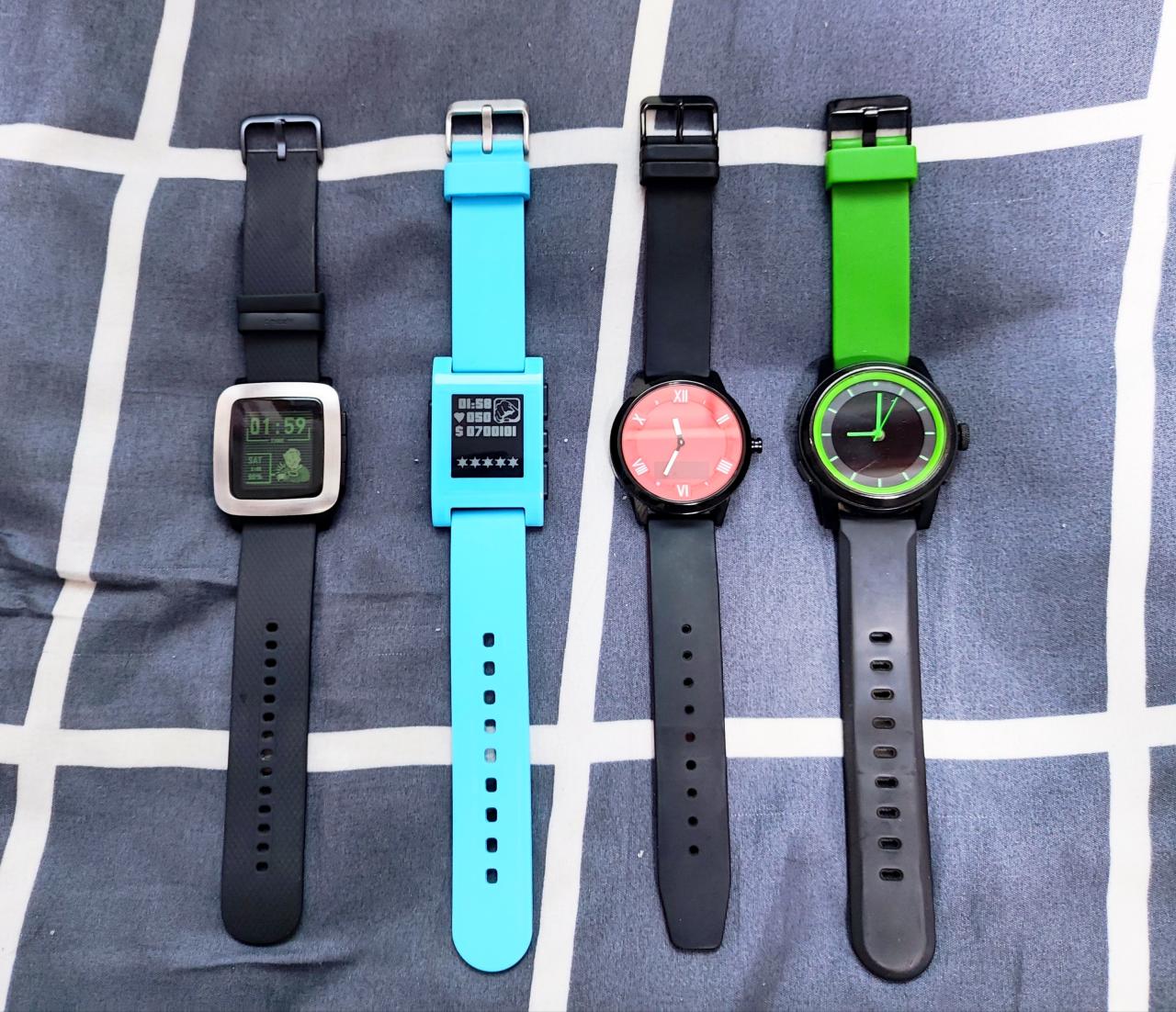 pebble time,高中时候买的表。当时让我不吃不喝从生活费里赞了好久,花了300买的这块表。目前依然坚挺,苹果app还能用。这款表我在b站出过视频详细讲解过,详情可见BV11o4y197Wh。只能说这是一款独一无二无法被替代的表。复古科技并存,常亮彩色水墨屏,实体按键操控,至今还在更新的有趣表盘,在我眼里它所有缺点都成了优点。它陪伴我度过了难熬的高中生活😍