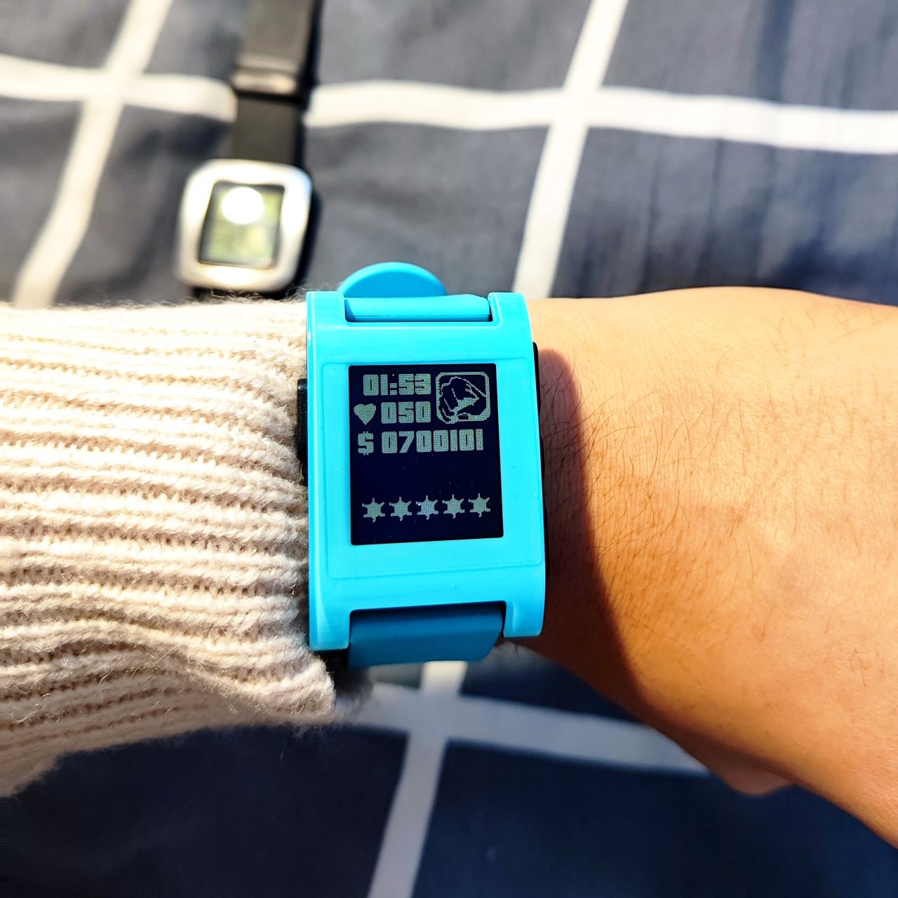 pebble一代,这块表是我在闲鱼上捡过最大的漏,全新带包装盒,一粉一蓝两块90块钱,粉色的我给我好哥们了电池换过了,外观可以说前无古人了,我还买过一块黑色的,可以彻底报废了。一代pebble过于古老,需要刷机才能使用