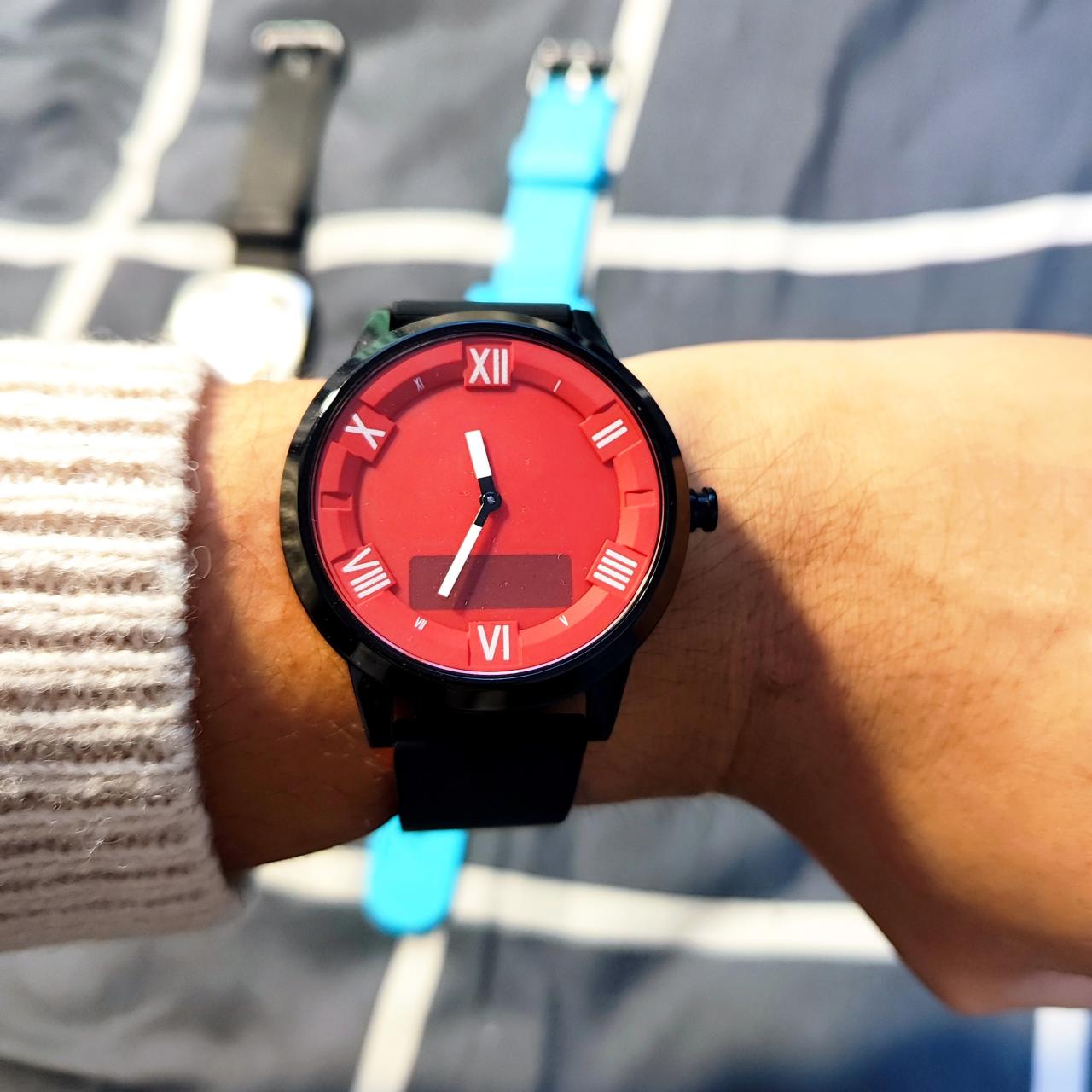 总体来说,这手表就是个玩具。我是特别喜欢它的外观,很多人觉得下面那个小屏幕很丑,但我觉得倒是有种复古的反差感。红黑配色和定制表带很对我胃口。除此之外还有白金配色以及皮质表带,那些我觉得不很好看。