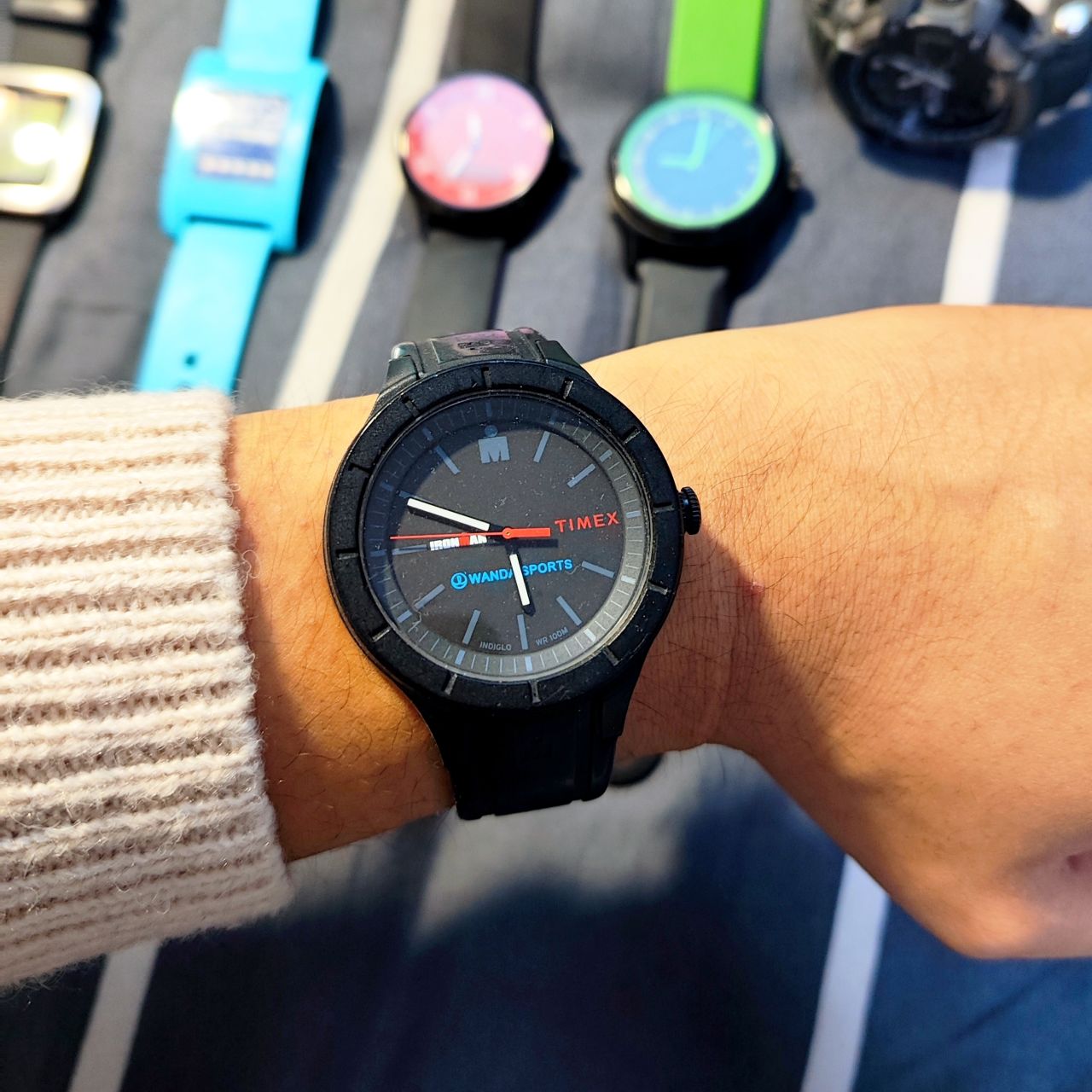 天美时铁人三项联名,闲鱼200左右。现在全网都找不到这款表的信息。手表由树脂和橡胶制成,可以带着游泳,声音非常大,不愧是天美时。在我的家乡经常举报铁人三项竞赛,我家就在北湖前住,比赛当天马路被封起来,两边全是围观群众,看见运动健儿矫健身姿飞驰而过,湖中人头起起伏伏,看着都快累死人了,他们真乃神人!虽然比赛最后经常由外国人夺得冠军我小时候便对铁人三项抱有兴趣,无奈长大后成肥宅了,买个表聊以慰藉吧