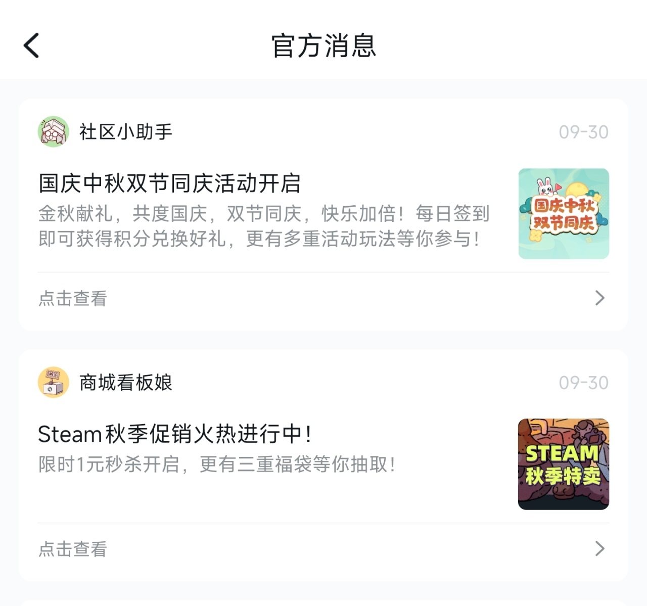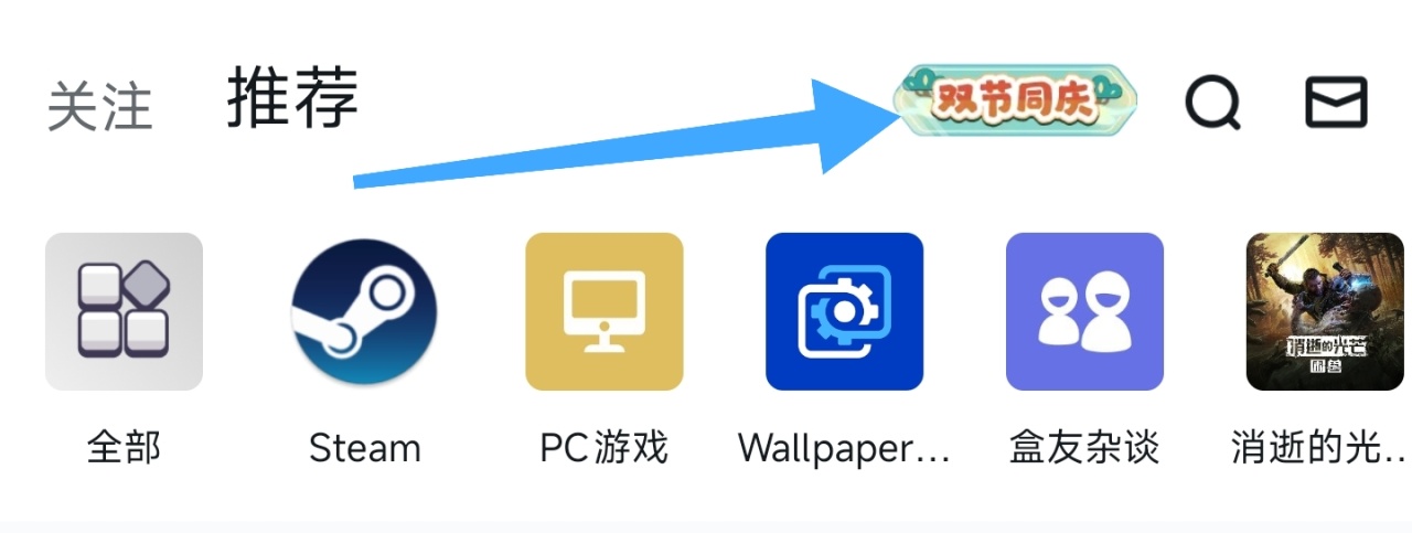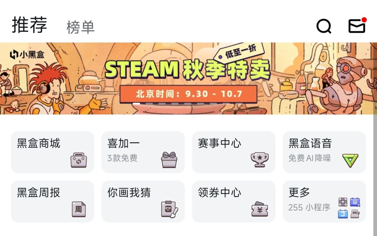 如果是一些较大的活动,比如小黑盒周年庆、本次的国庆中秋双节日等活动会在首页右上角有专门的入口以及私信通知。