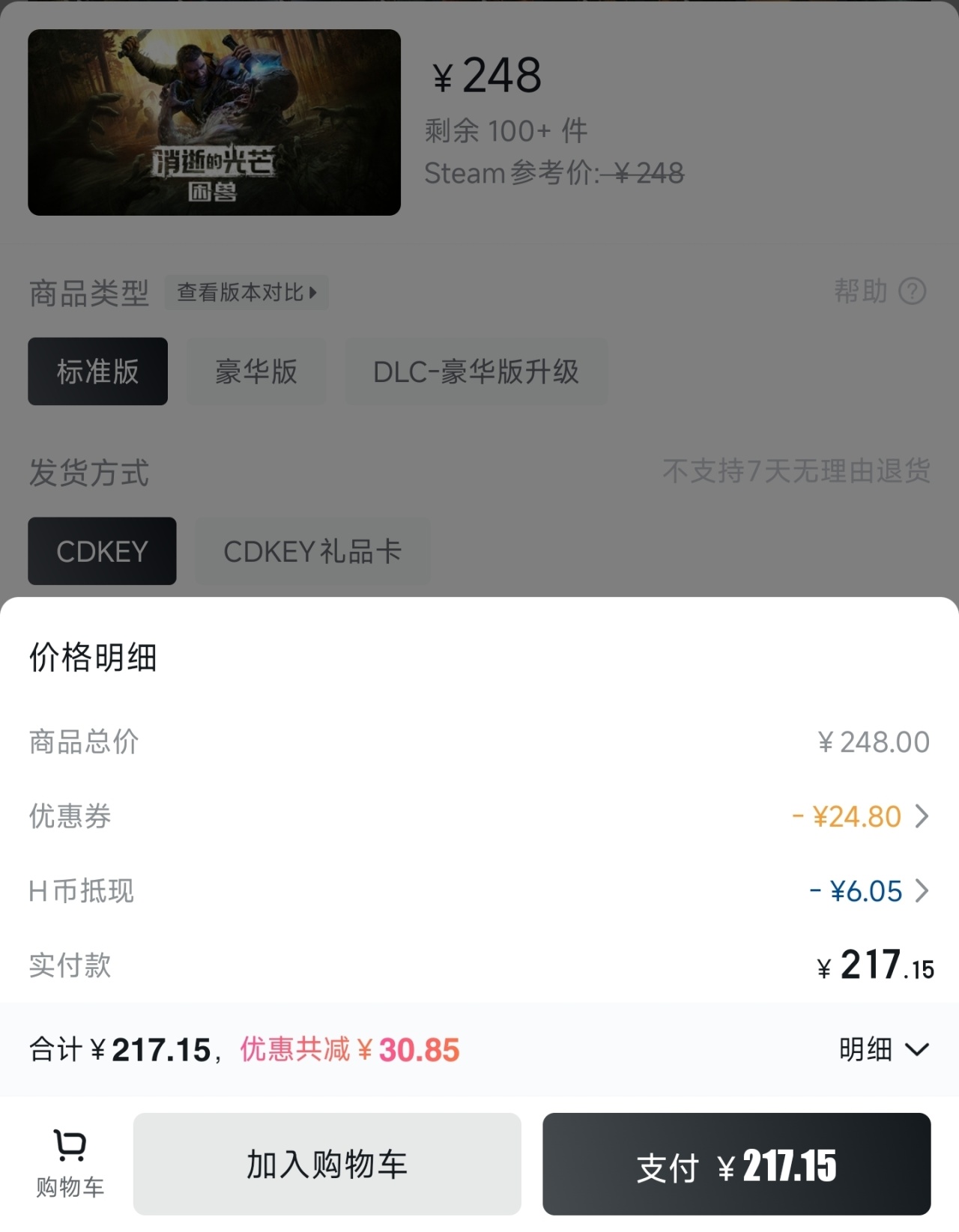 b.盒币也是可以作为抵扣价格的直接方法,根据小黑盒商城会员等级不同可抵扣的上限也不同。付款时可选择使用多少盒币进行抵扣。