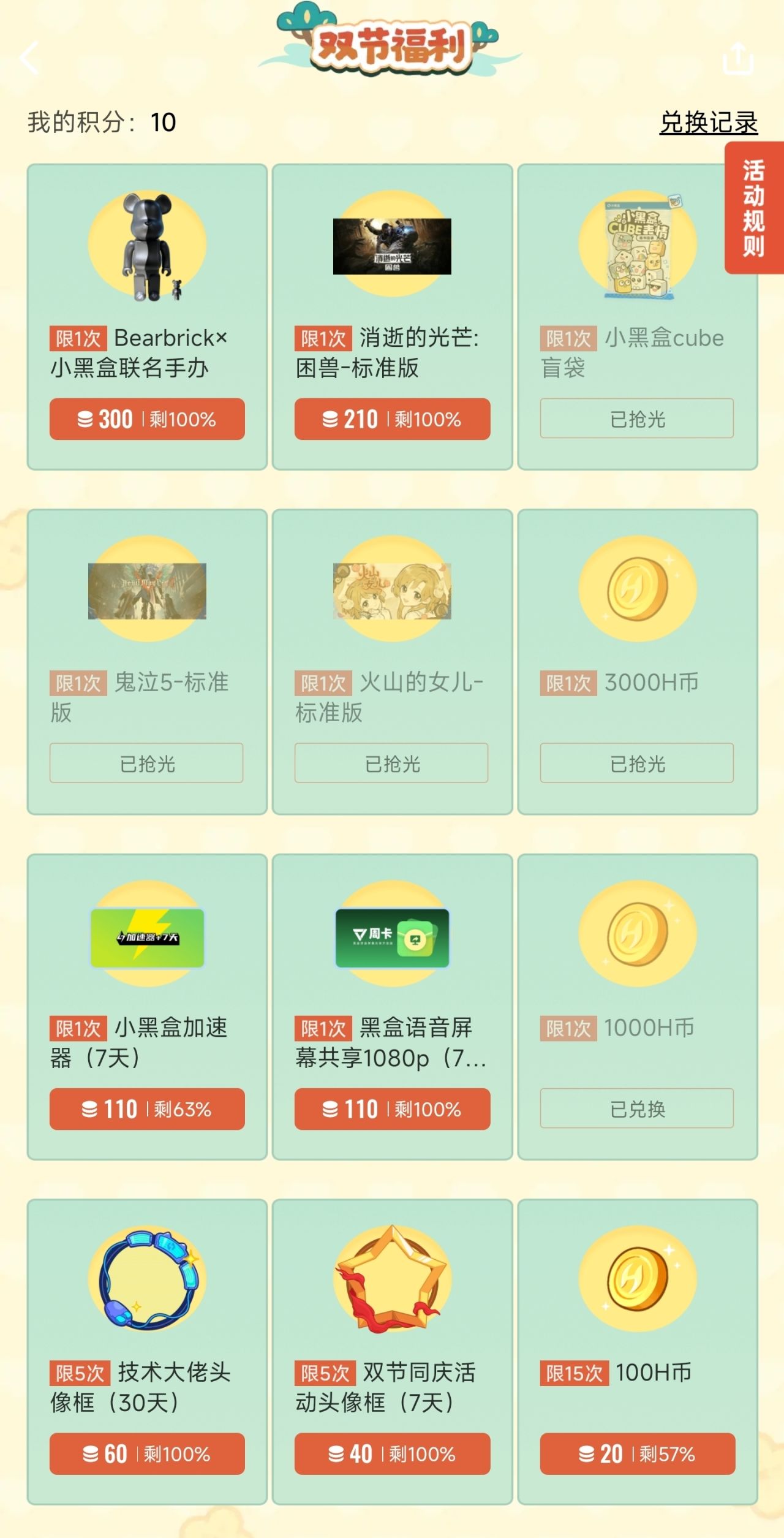 本次双节可兑换大量盒币