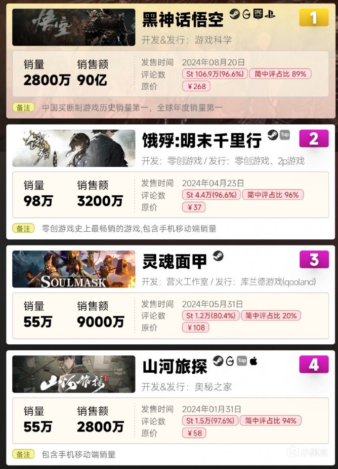 《黑神話:悟空》的奪魁自然毫無懸念,但它驚人的銷量與銷售額還大幅刷新了買斷制遊戲歷史紀錄。