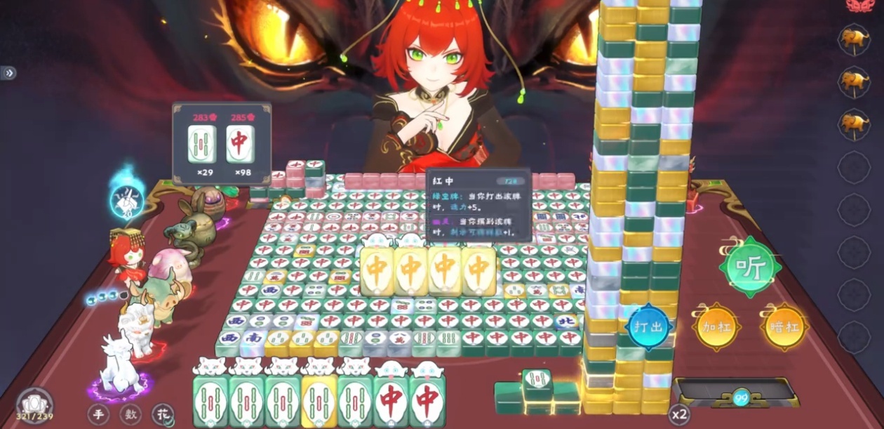 最重要的遊戲當中摸四張牌和胡牌並不是遊戲的開始和重點,角色的技能和各種道具甚至還可以類似於作弊一樣獲得更誇張的牌或者是直接偷別人的牌。遊戲的麻將也會被加入各種不同的狀態,可玩的套路隨時都會發生改變。