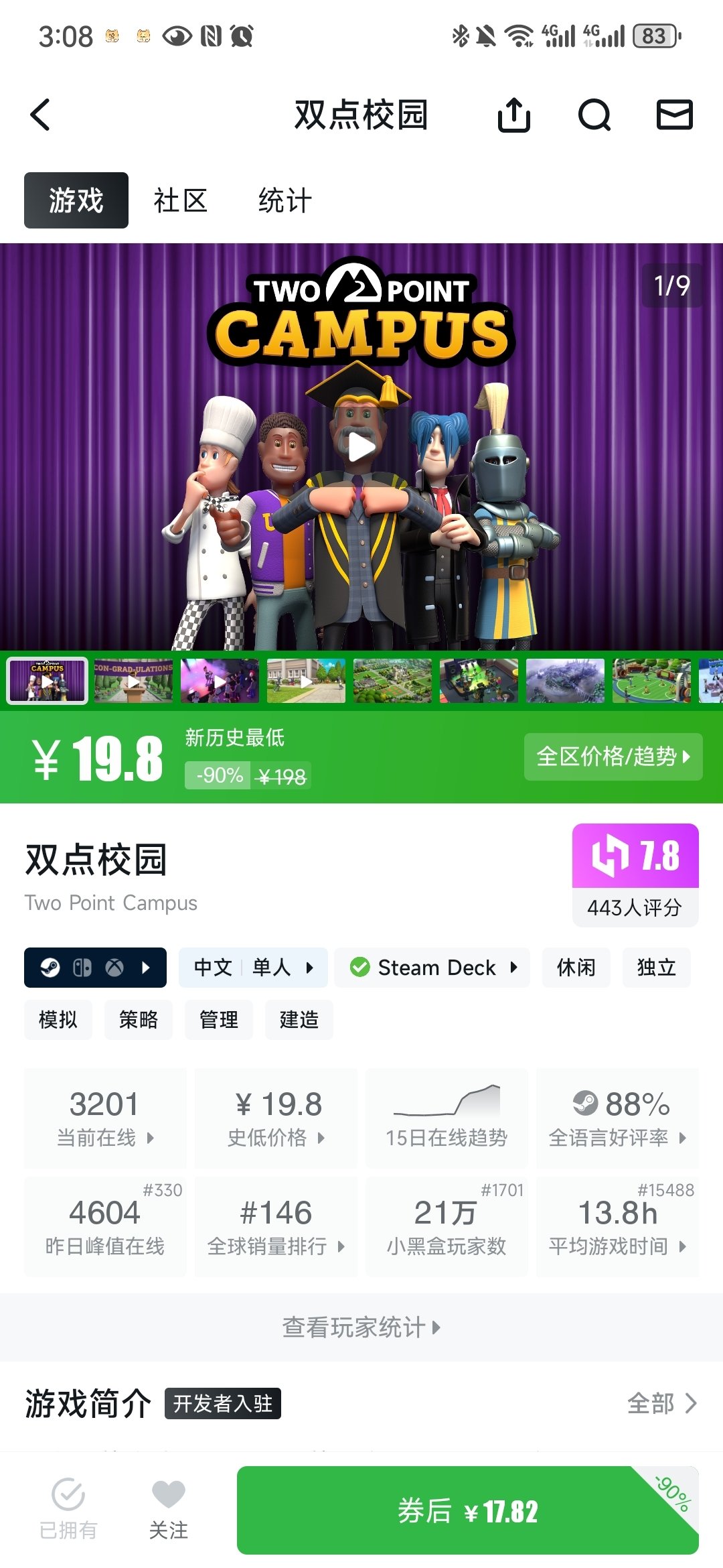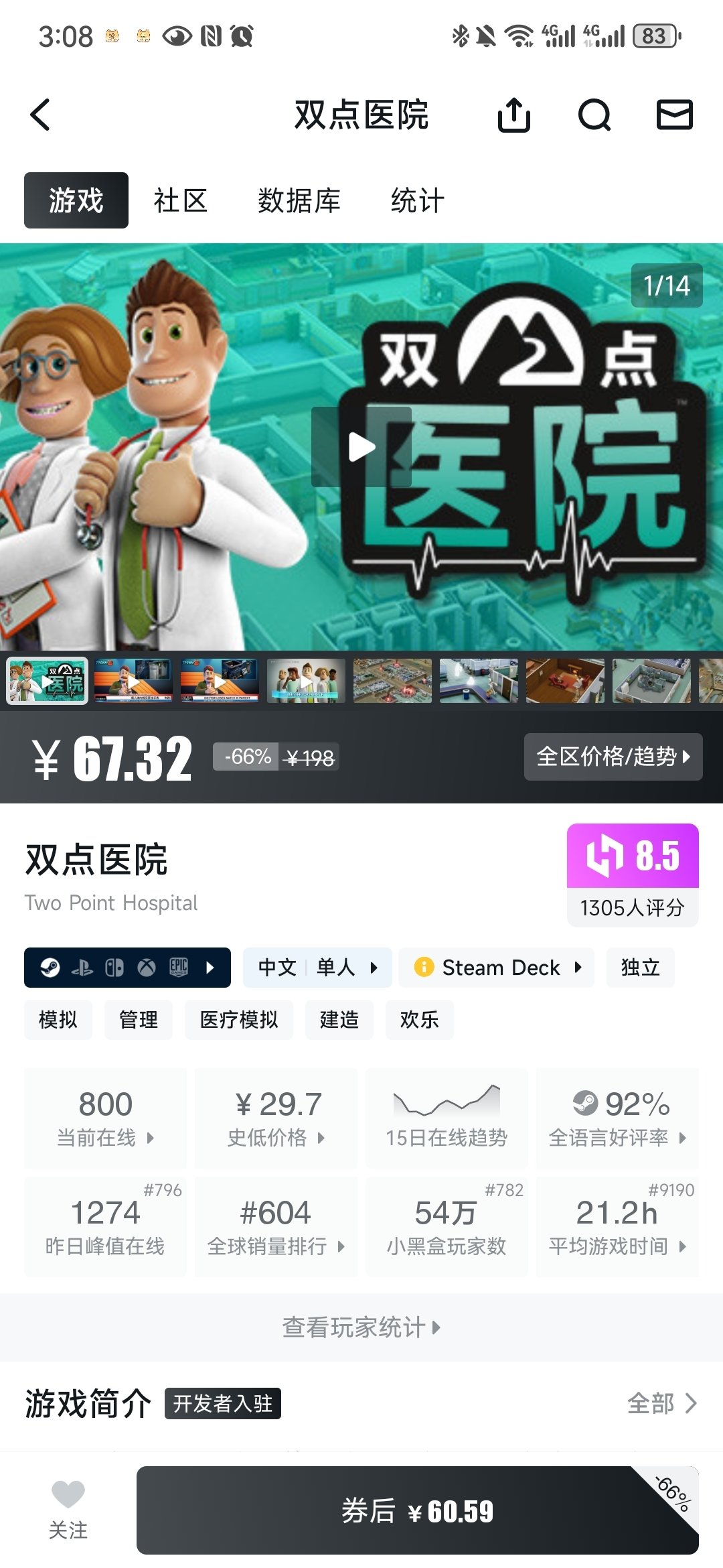再接触的就是epic送的双点医院,翻译真的很有梗“不要给鬼魂喂食,死人不用吃东西”“随地大小便,视为同意器官捐献”这个真是大大的同意,玩儿起来也很舒适,这次双点校园新史低入手了,还没玩儿过,听说就是套皮的双点医院,还没玩儿过不做评价,但是听说双点博物馆最好玩儿,请也快快超低价让我捡漏吧!! ps:有人会给epic的双点医院打免费的dlc补丁嘛???求教程!!!