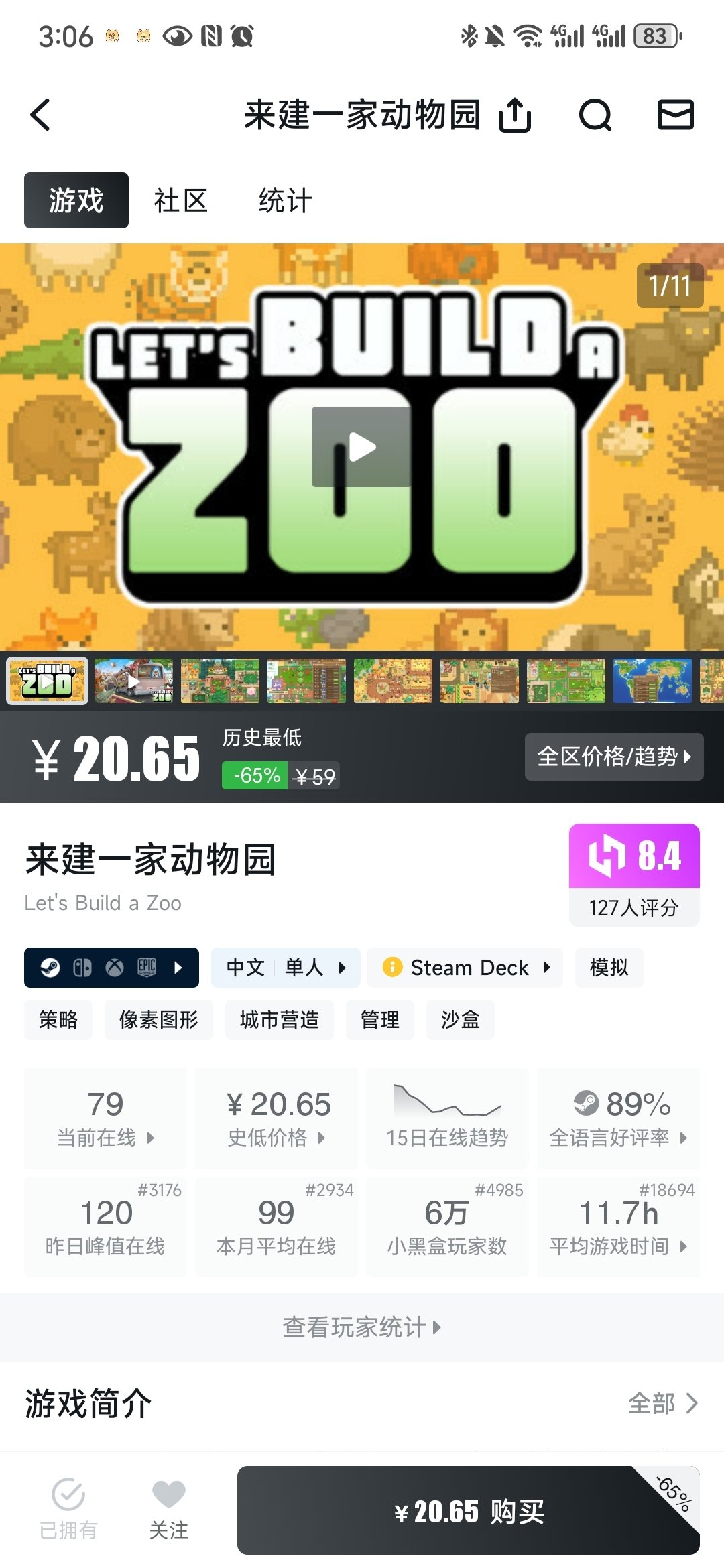 来建一家动物园也是一个很棒很棒的游戏!里面的动物很多,经营感也很爽,就是善良和邪恶值真的让人很纠结,走善良路线的时候总有人要钱,我也很穷!!真的不想给你啊喂!!!但是善良值已经快100了,建造的也是善良设施,再转邪恶很亏哎!所以痛快的开了新档,做邪恶园长😈可是我爱小动物的心是真的,我不想把小狗装扮成狮子,我想送他回家(想卖掉那些嘎嘎能生的兔子和鸭子鹅蛇猪等等等的心也是真的),喜欢像素风和经营建造的朋友别错过呀!!
