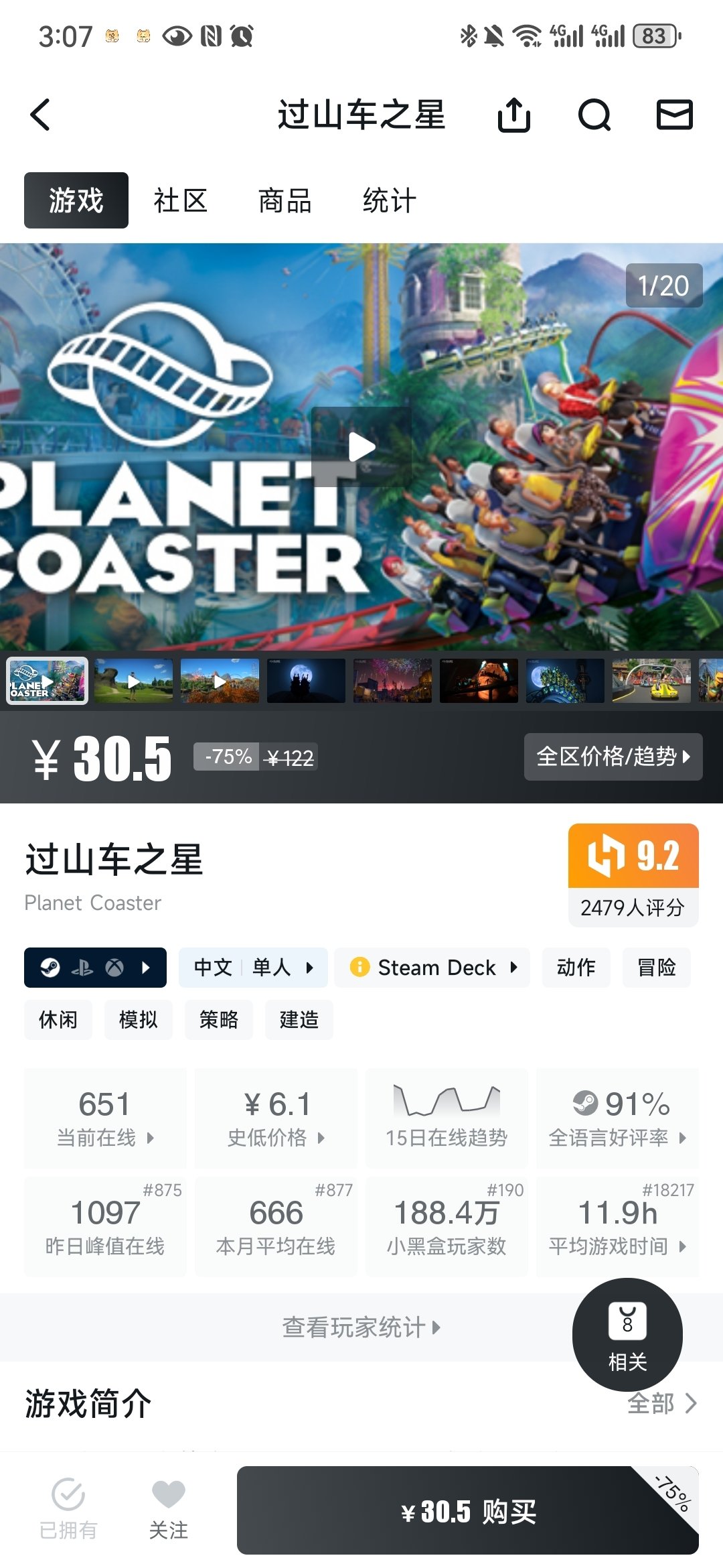 最开始玩儿的是过山车之星,当时六一折扣才6.1,直接秒入,收费的dlc东西很多,但是都可以打补丁,玩儿起来很顺畅,建造出一个能赚钱还漂亮的游乐园真的很自豪!