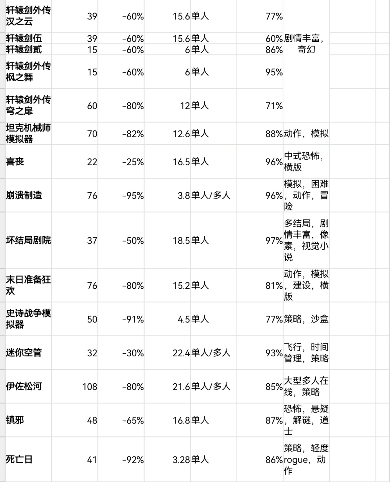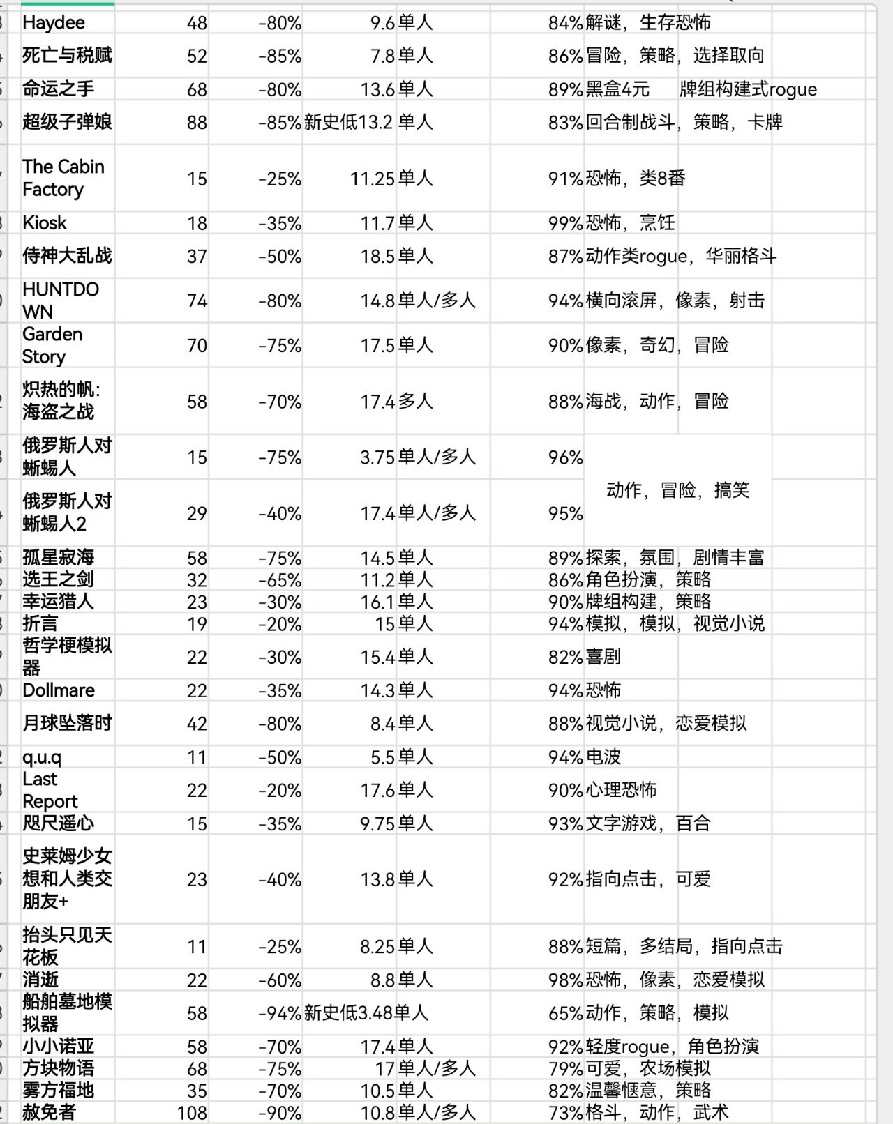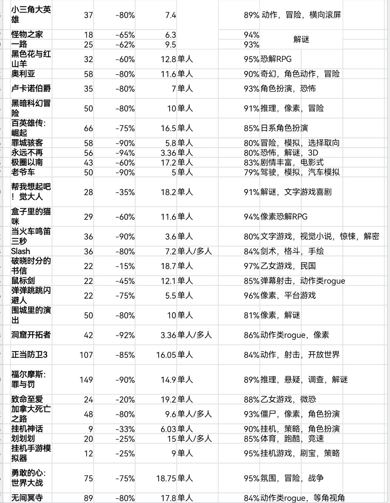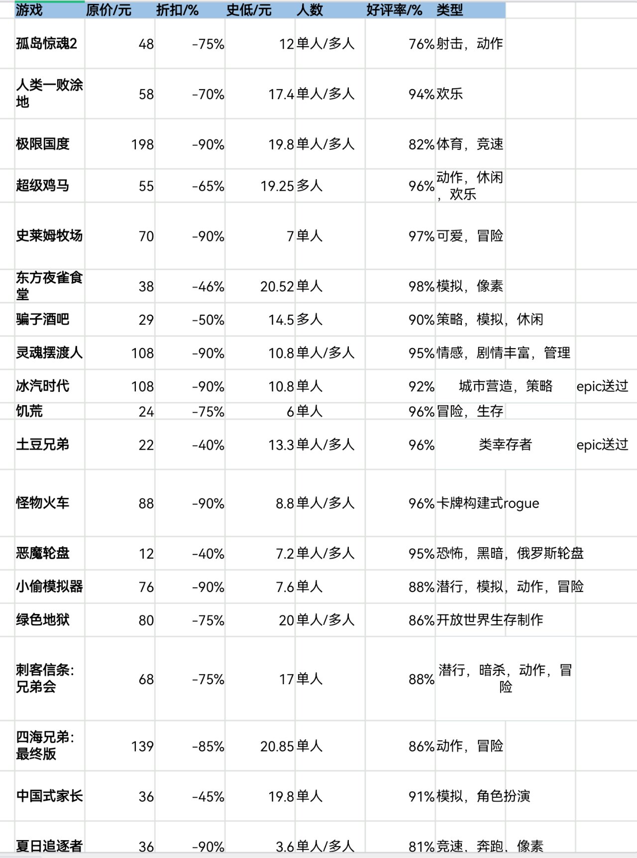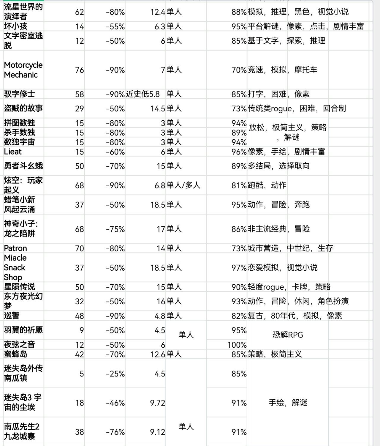 steam秋促即將結束,620款20元以下史低遊戲表格速覽版