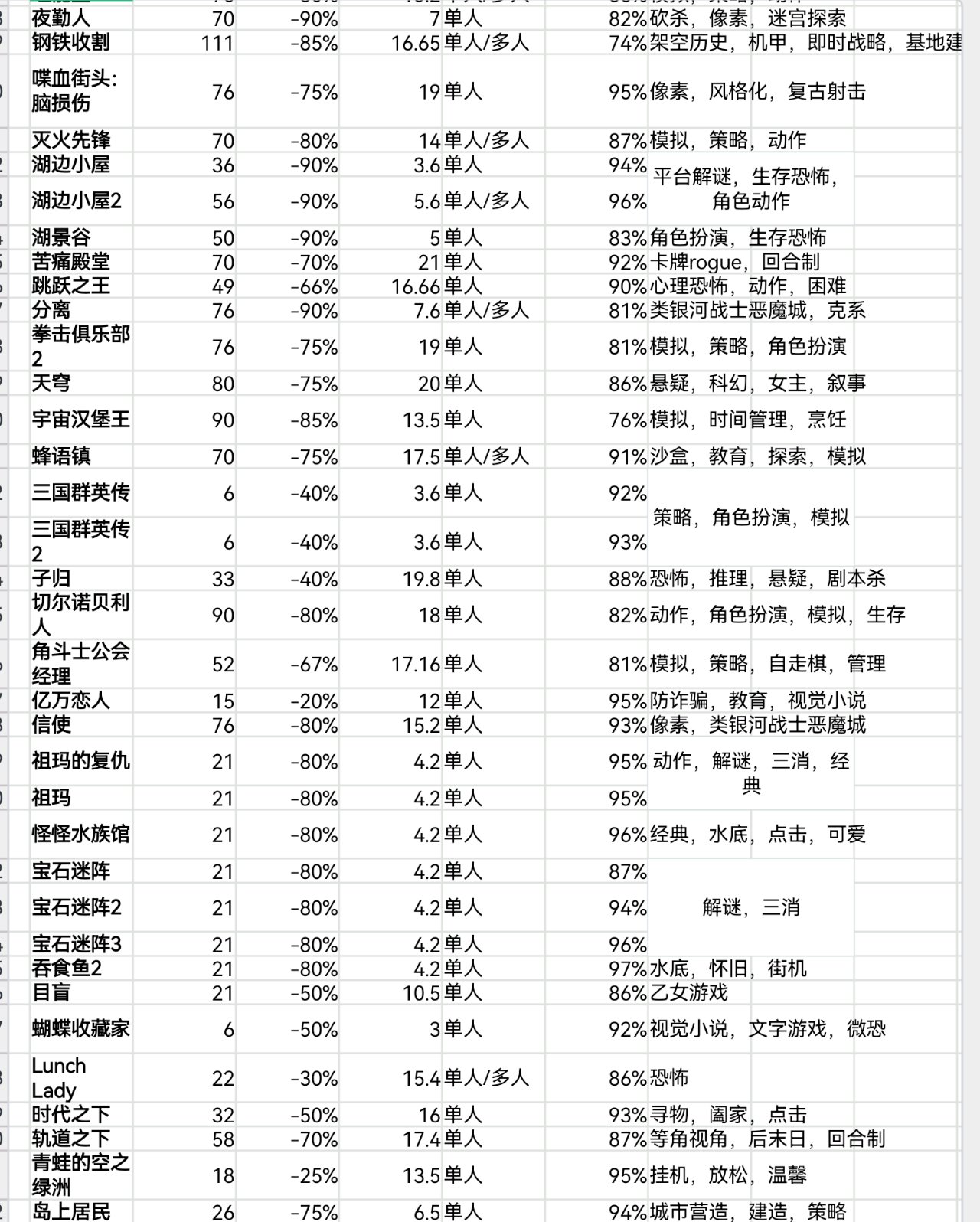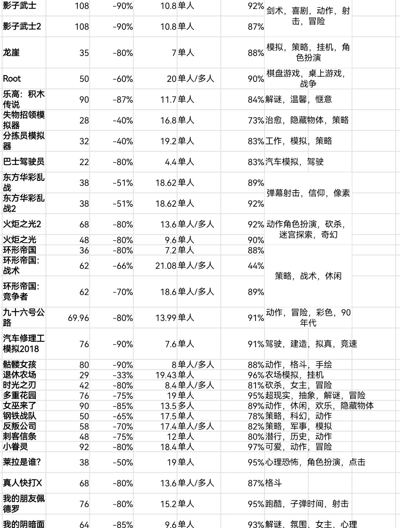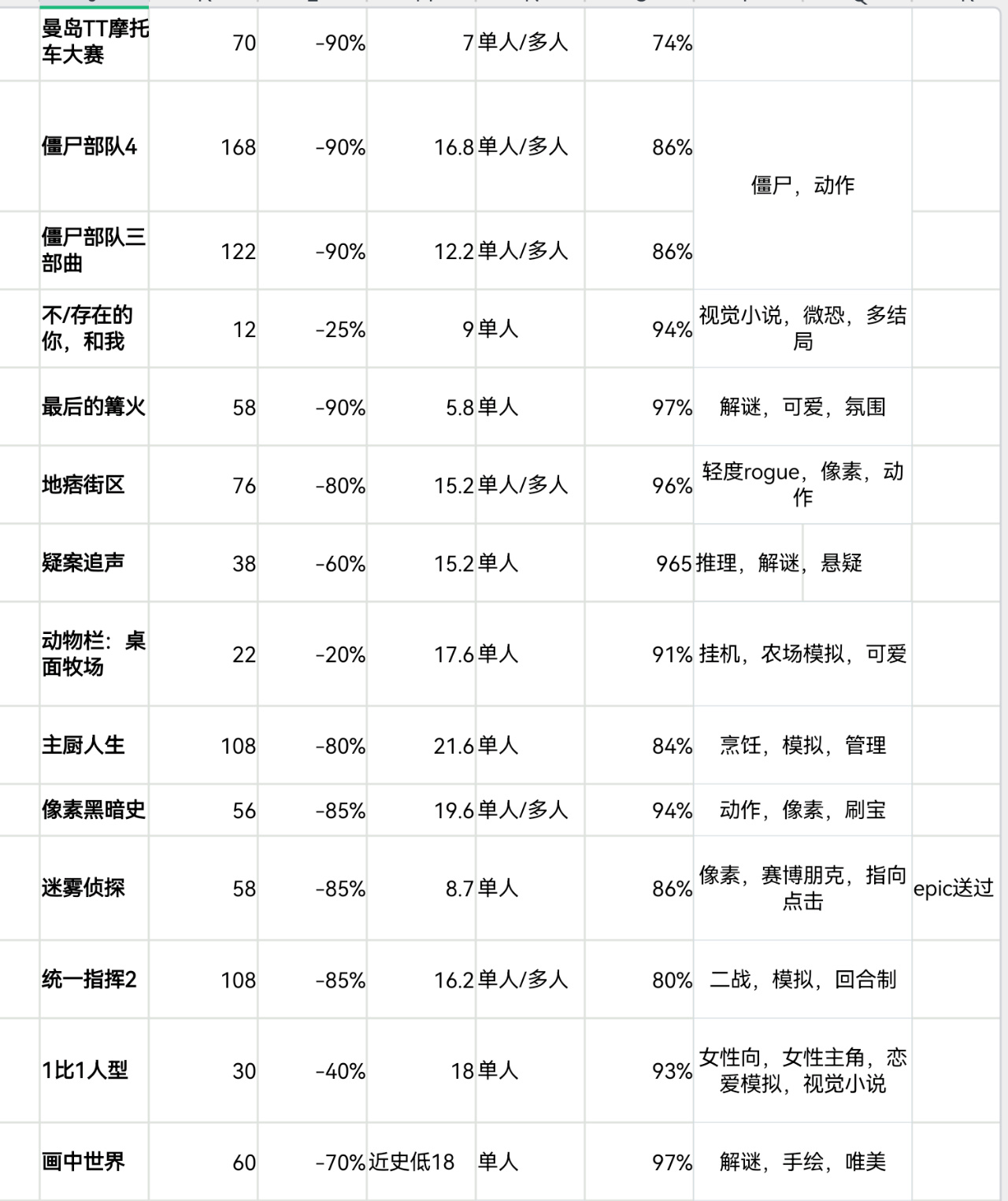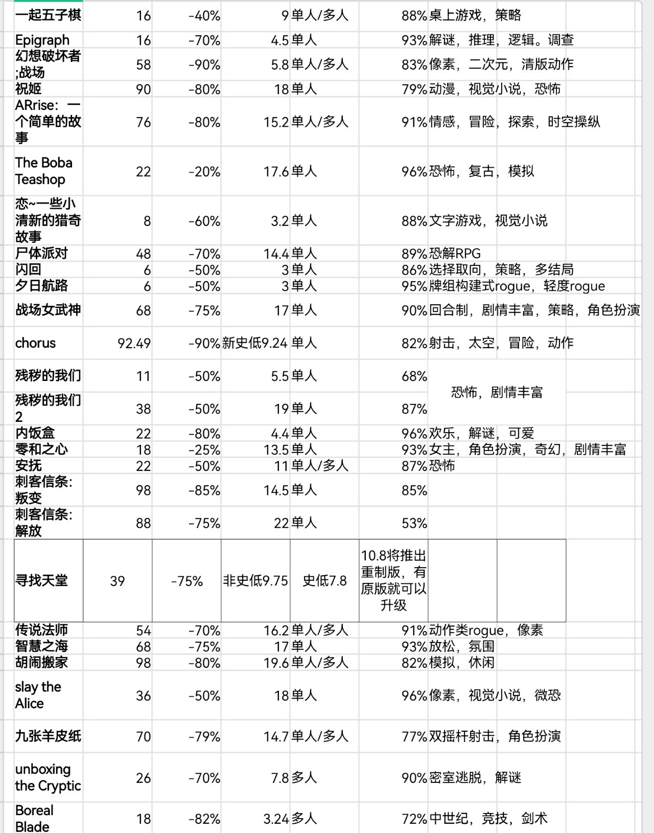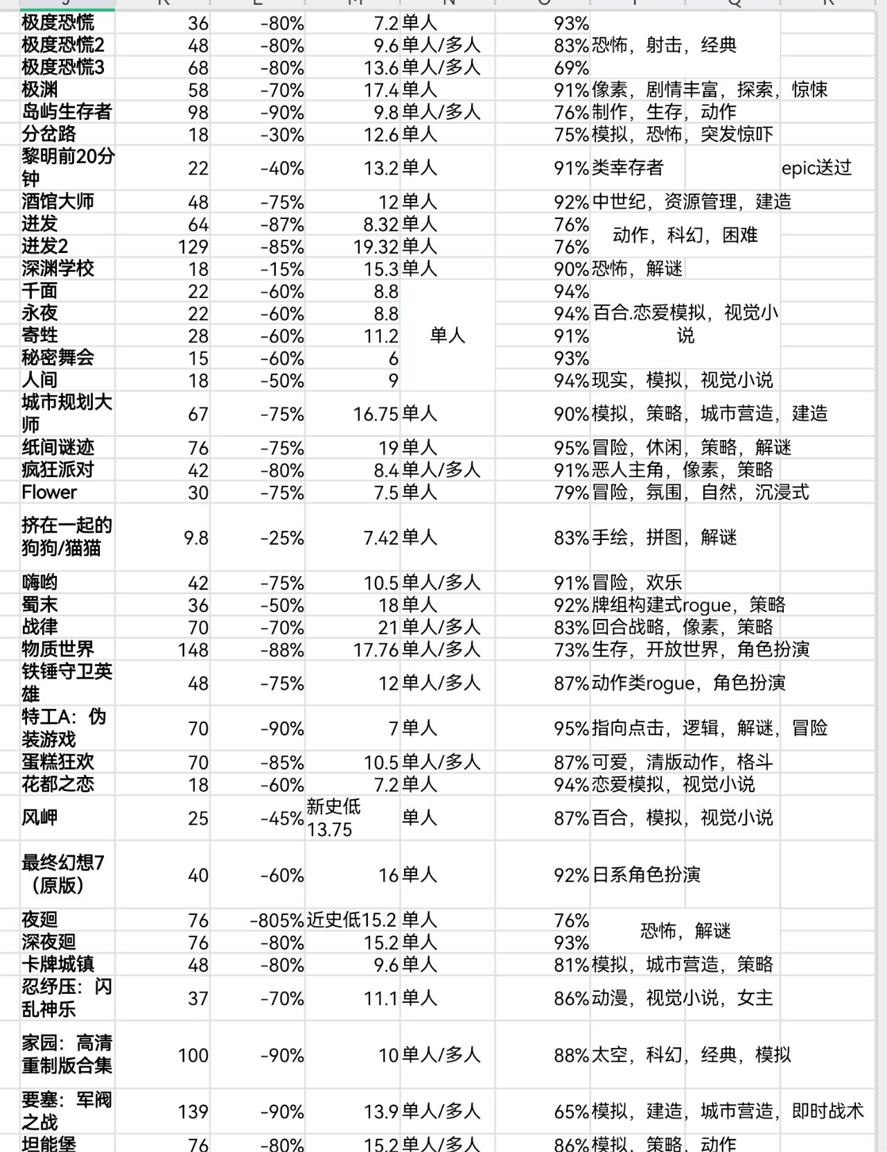 steam秋促即將結束,620款20元以下史低遊戲表格速覽版