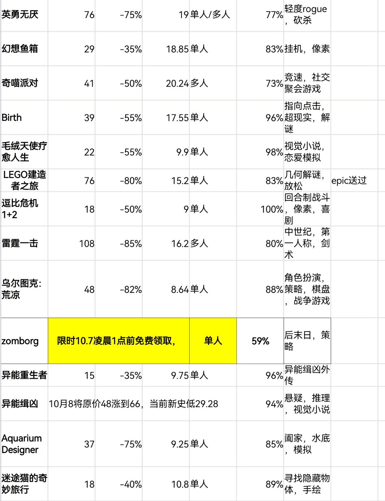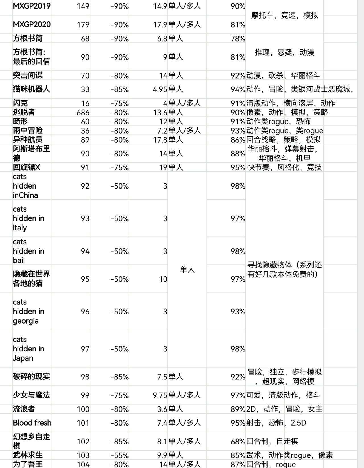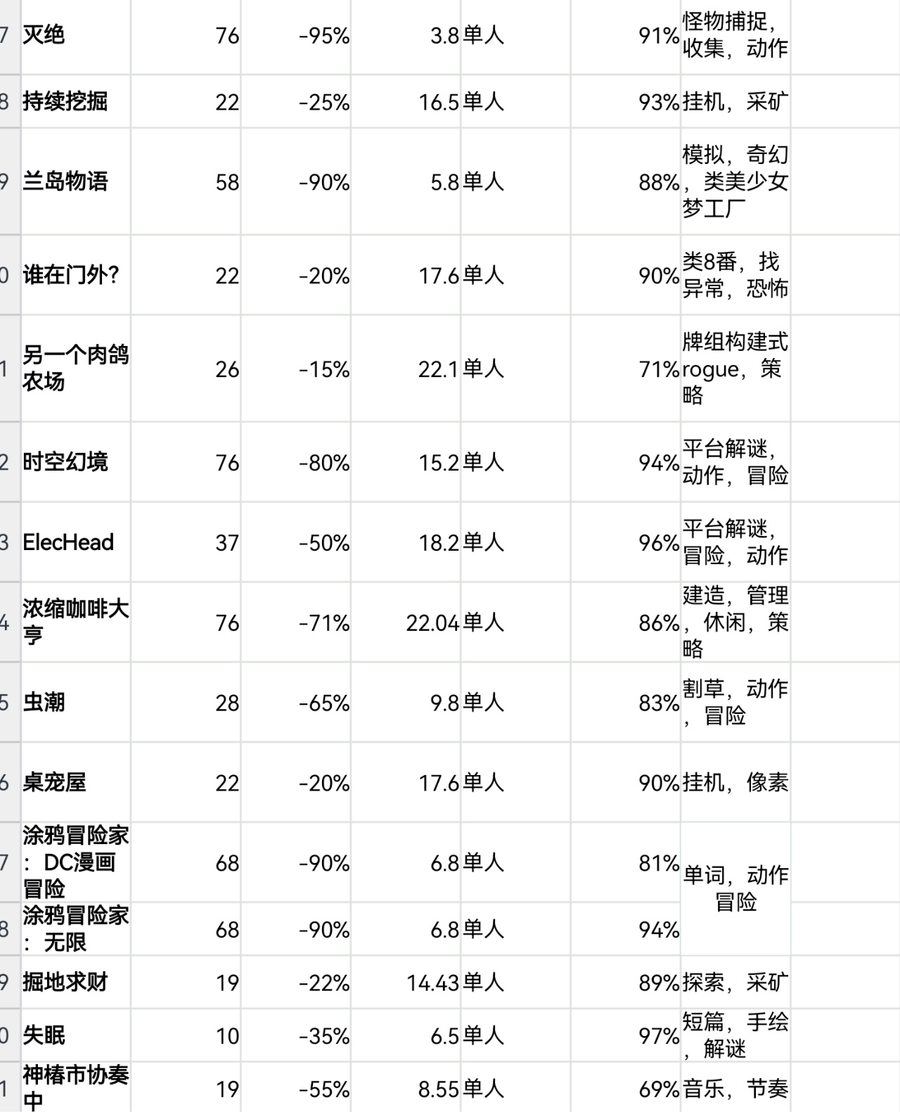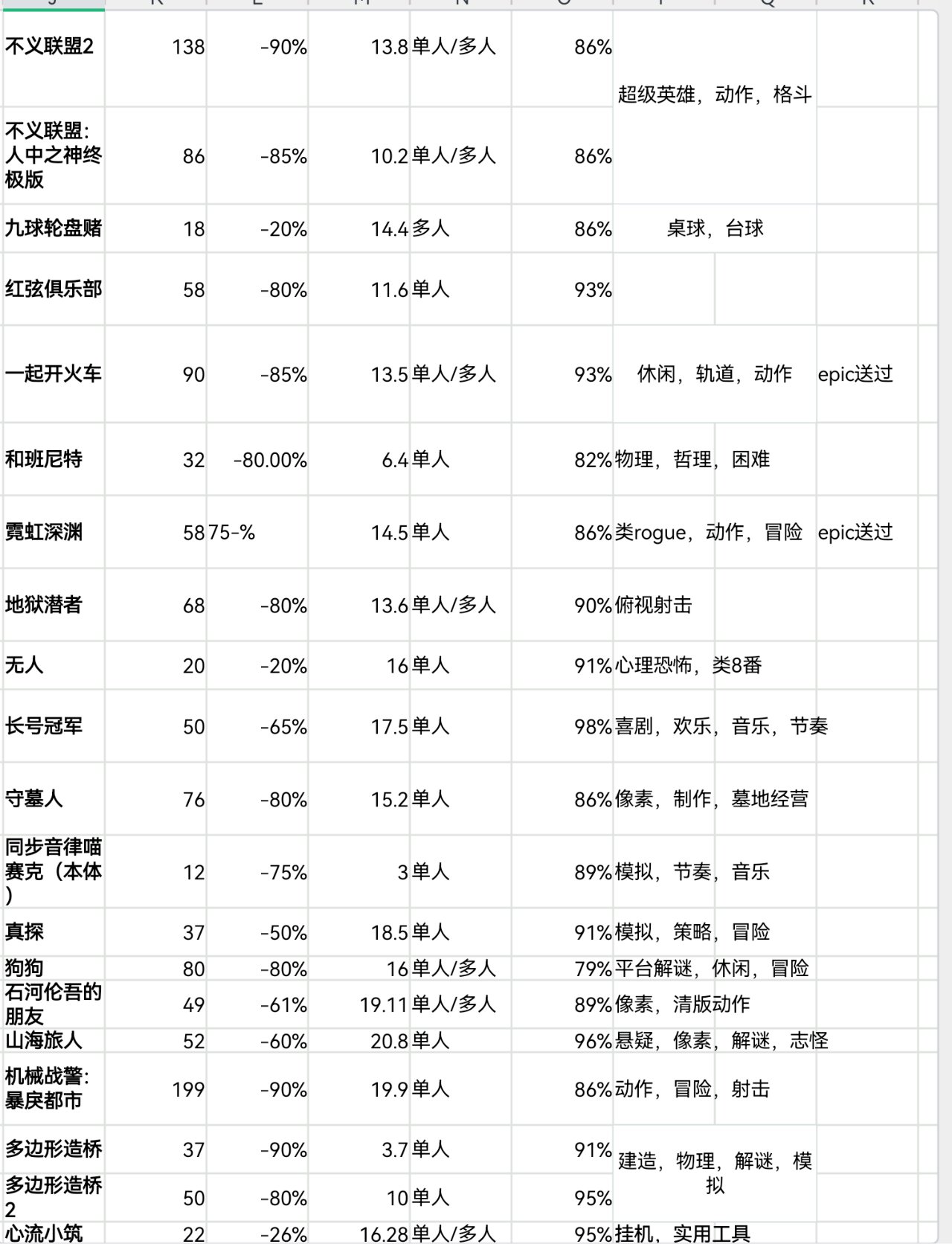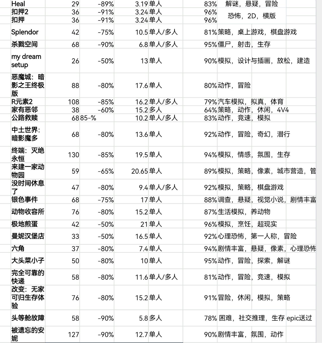steam秋促即將結束,620款20元以下史低遊戲表格速覽版