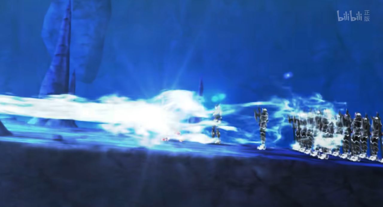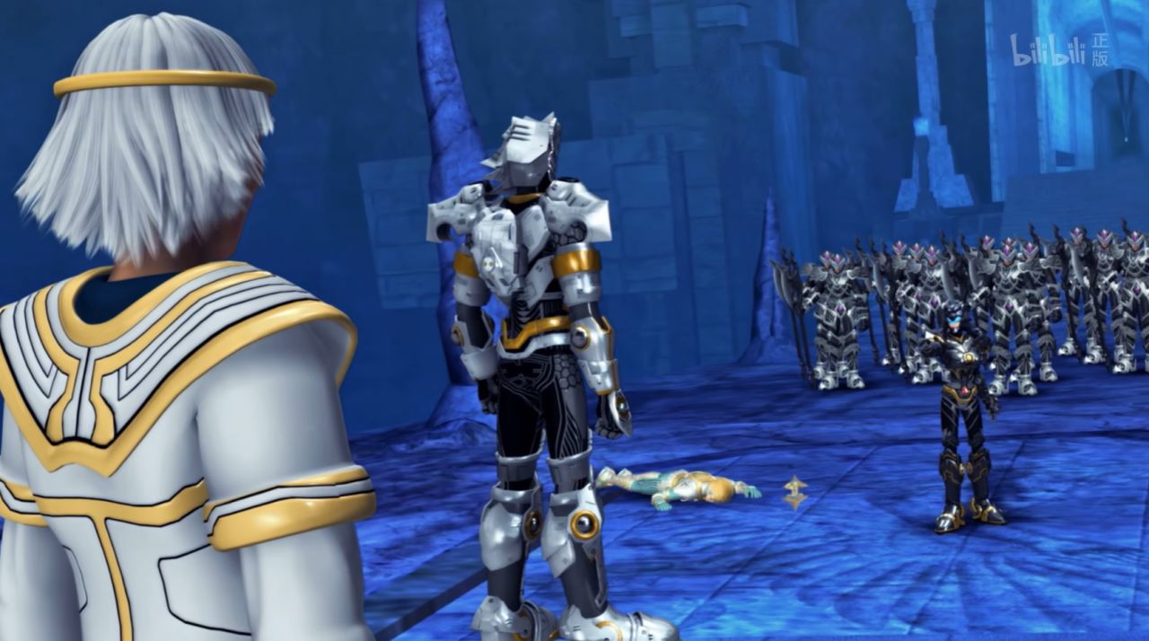 但很快雪皇部下的白虎族闻讯赶来,开始残杀大量逃跑的鲸鲨族群,泰雷召唤雷象神阻止白虎族,白虎族士兵不敌雷象神。最后,元正长老(十万年后泰雷的师父)从白虎族中走了出来,并召唤雷盾星云对抗雷象神。