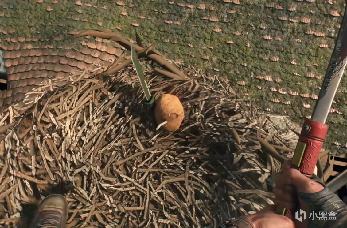 說實話這個我不太確定是不是。在圖示位置的房子附近有根大煙囪,爬到他的頂端會發現一個鳥窩,鳥窩裏是一個土豆拿着一把小刀。