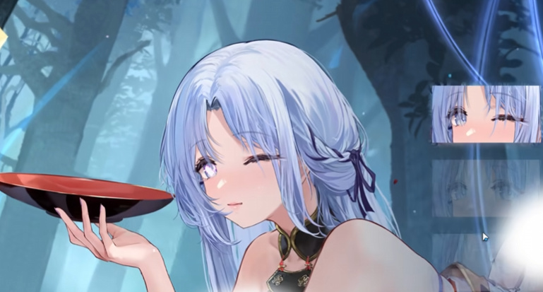 比如說,阿爾薩斯新L2D皮膚的背景在一處遠離喧鬧,輕柔月色映照着的僻靜樹林中。昏暗的場景加上螢火蟲亮光的點綴,一下子就營造出了靜謐又私密的氛圍。這彷彿在暗示指揮官——接下來,你可以毫無顧忌地和阿爾薩斯進行親密互動。