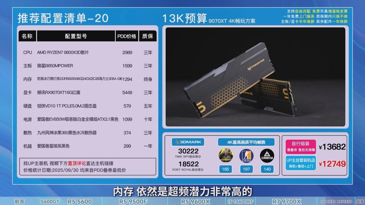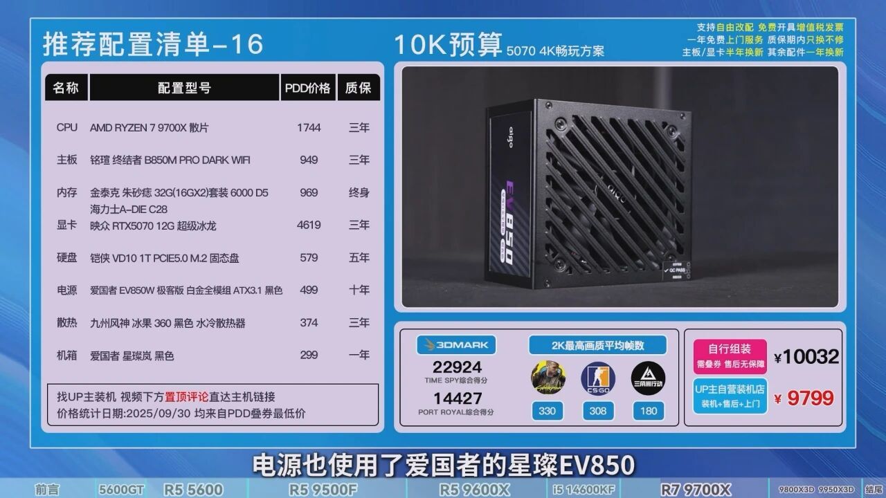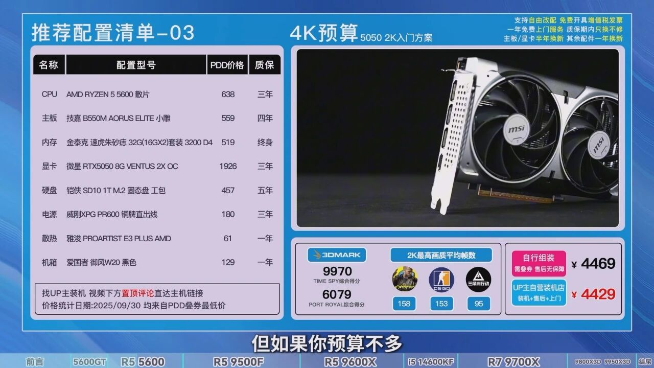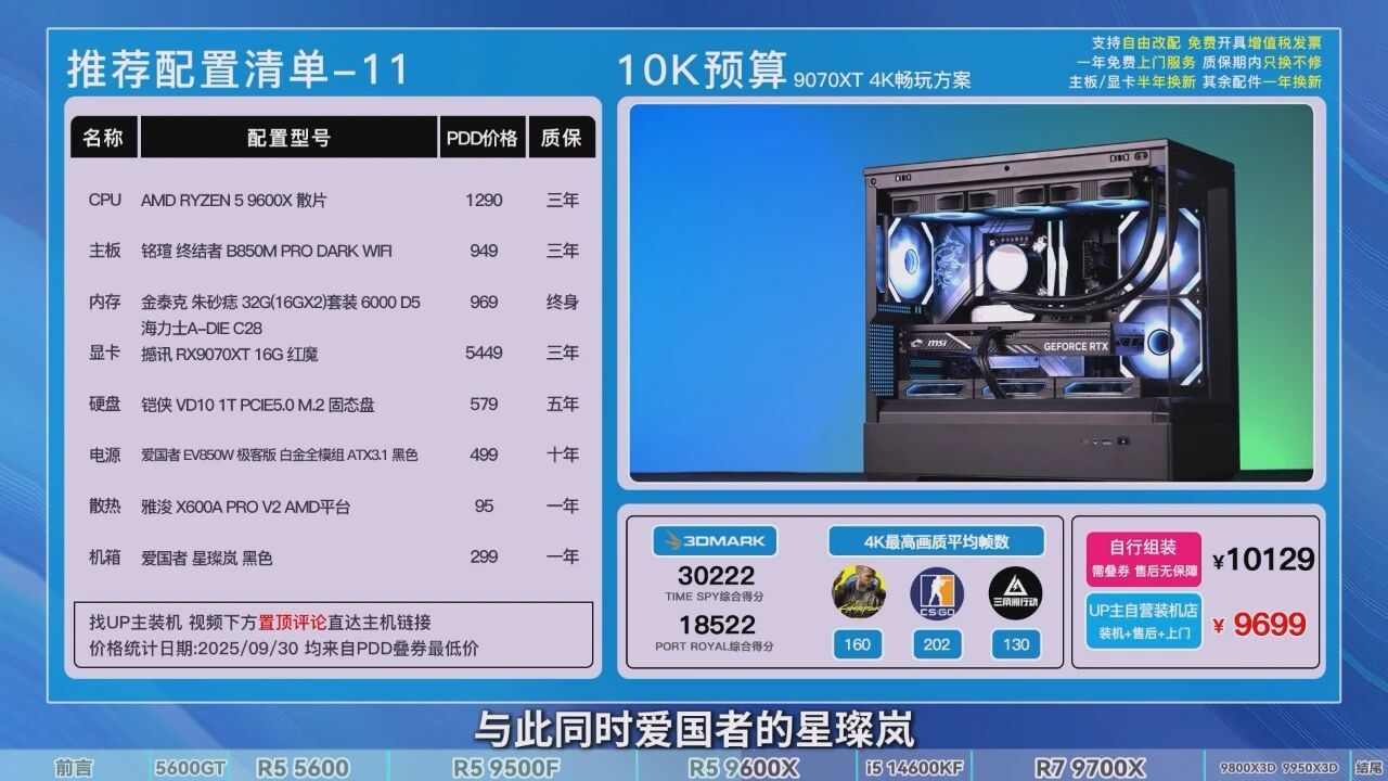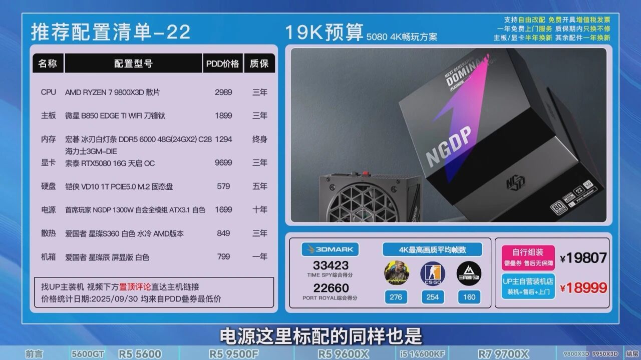 好了,以上就是本期和微論件10月 DIY主機配置的全部內容了,相信看完我們實測的數據,大家對於顯卡之間在遊戲幀數方面的差距,也有了比較直觀的認知。在視頻的最後,我們也將本次實測的整機方案進行了全面彙總,並以天梯圖的形式進行了排名展示,方便大家根據自己的需求精準選購。