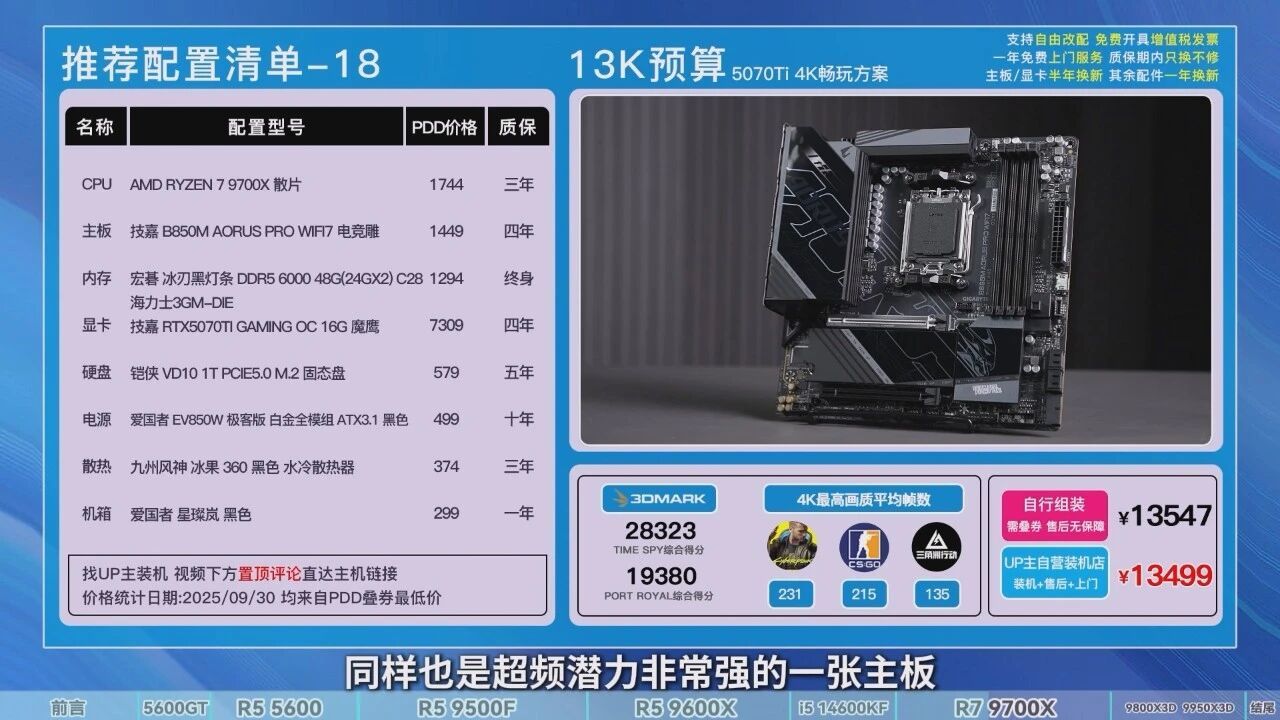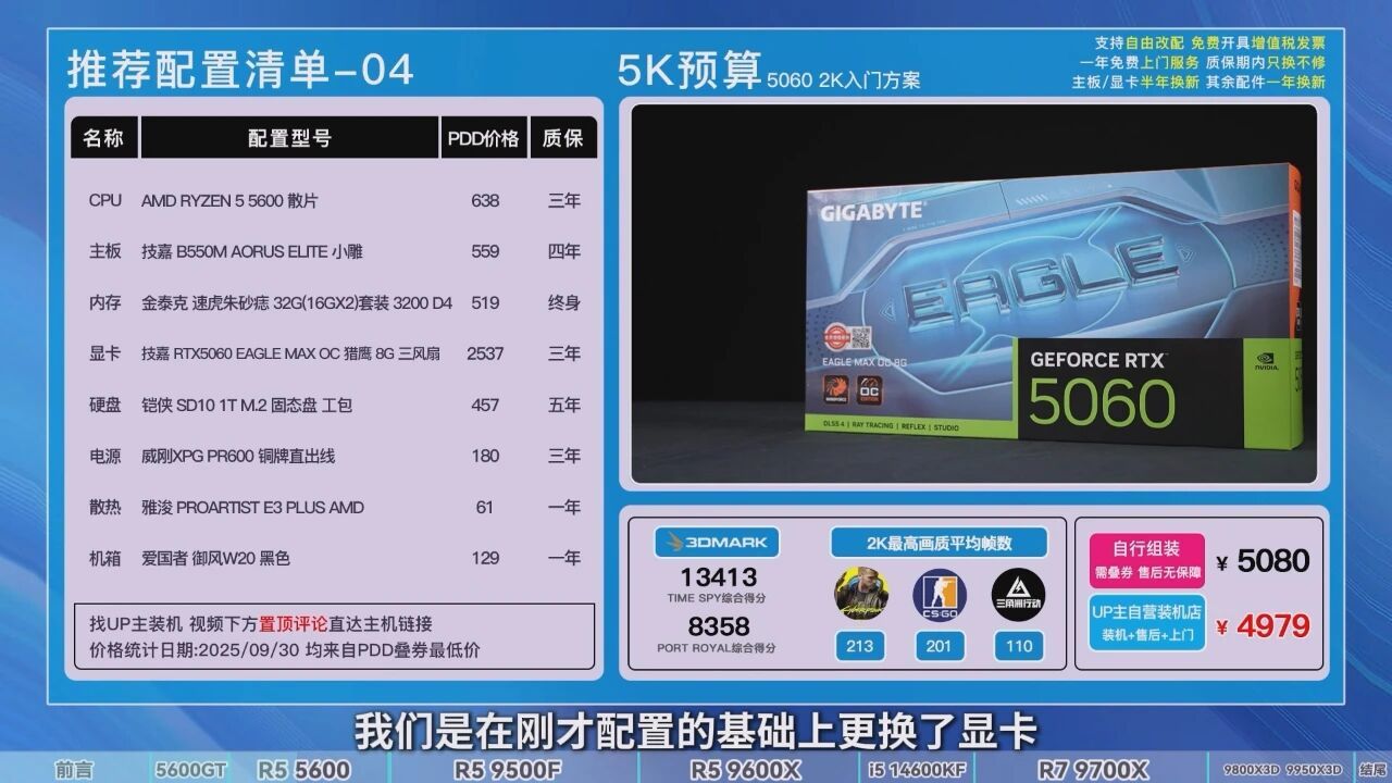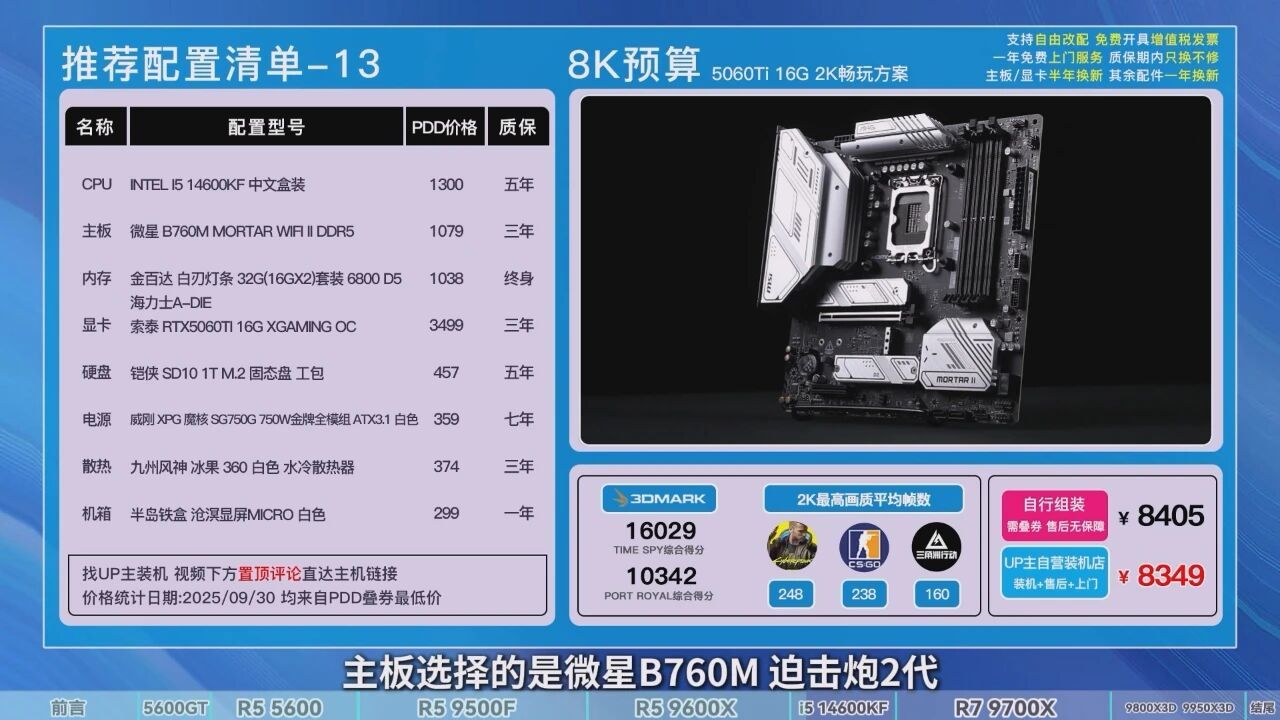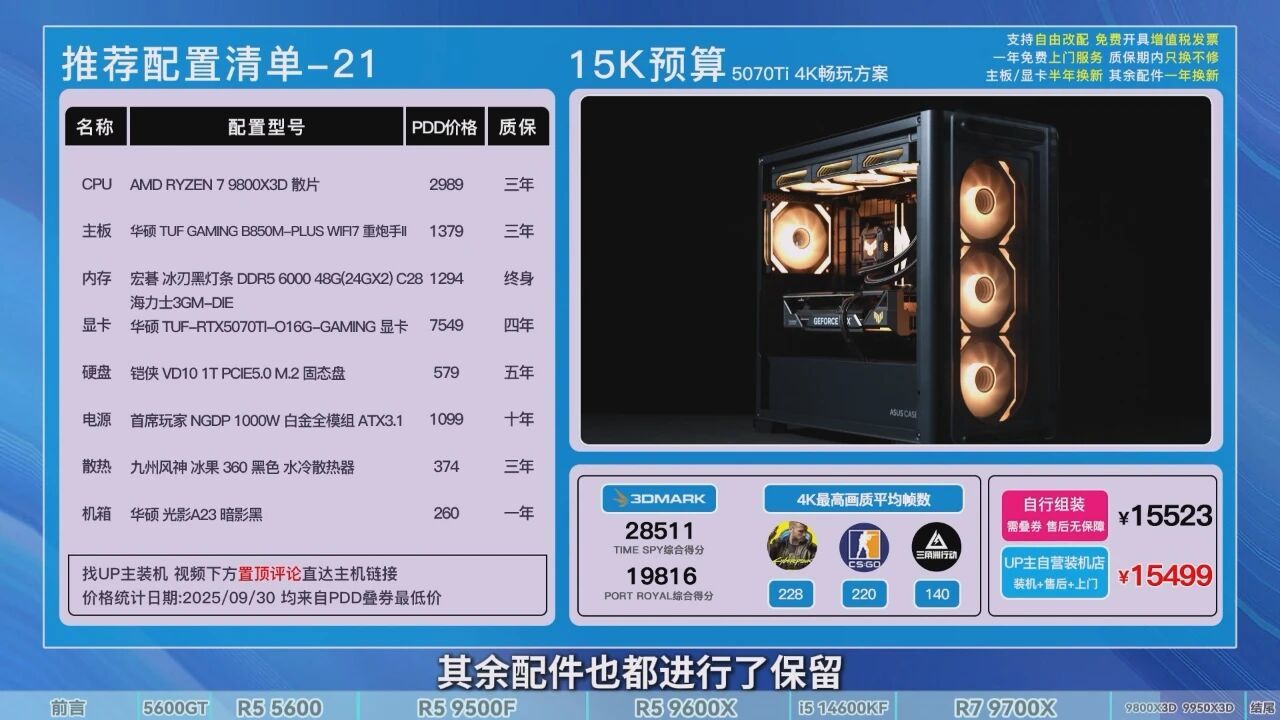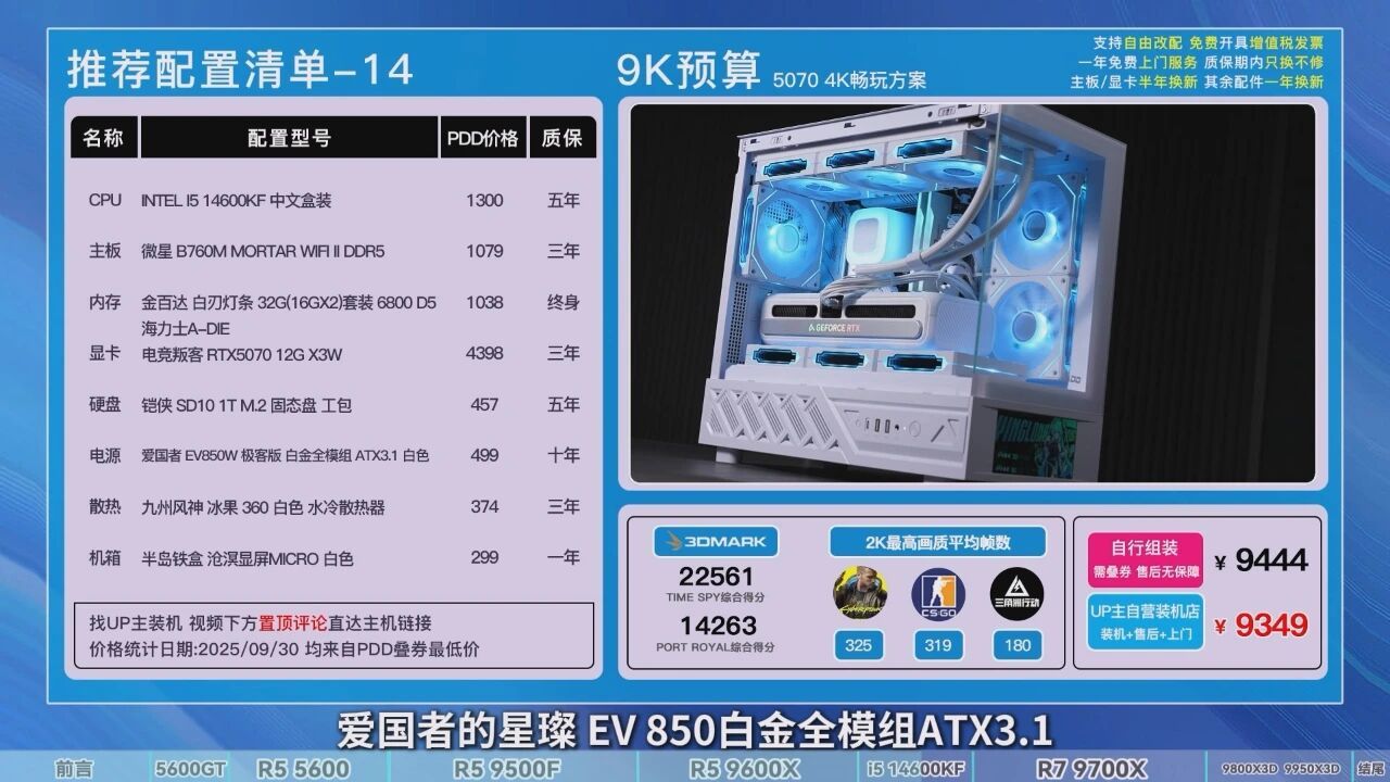 好了,以上就是本期和微論件10月 DIY主機配置的全部內容了,相信看完我們實測的數據,大家對於顯卡之間在遊戲幀數方面的差距,也有了比較直觀的認知。在視頻的最後,我們也將本次實測的整機方案進行了全面彙總,並以天梯圖的形式進行了排名展示,方便大家根據自己的需求精準選購。