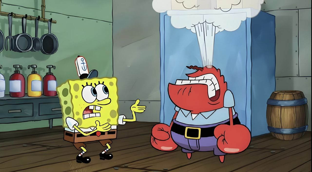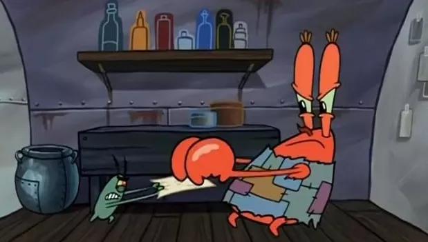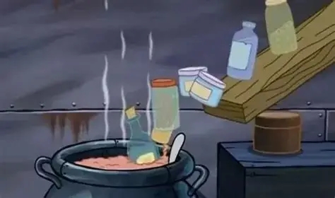 那就是蟹老闆和痞老闆爭搶時,打翻了配料架子,亂七八糟的配料都掉進了大鍋裏。