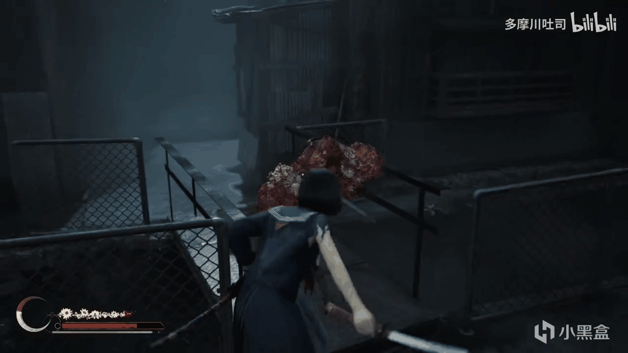 以这个数据为基准,让我们先来看一张gif图,可以见到我们的深水雏子大人一个后撤步可以从桥口处后撤至少四个护栏网的距离。