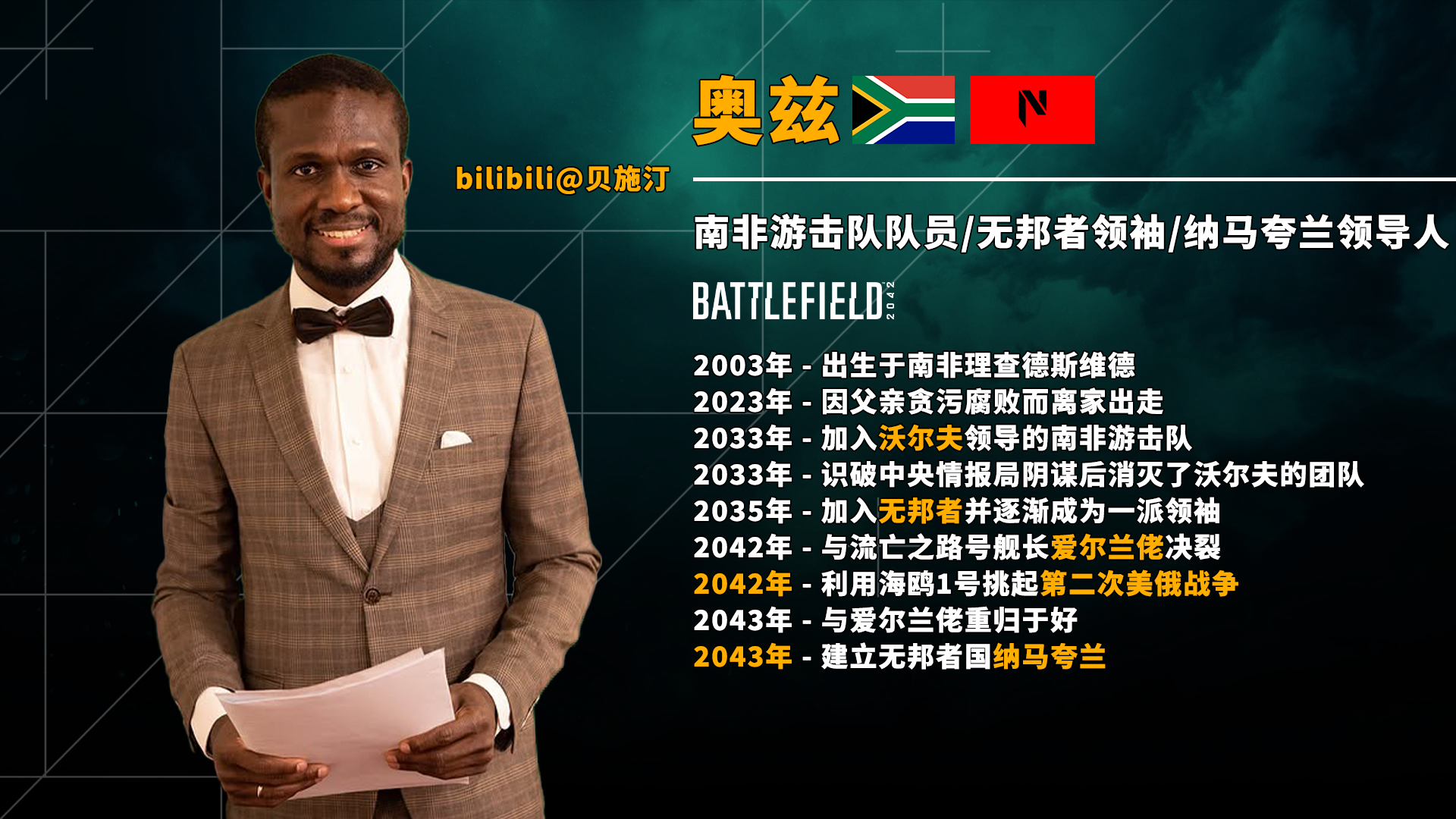 但对于奥兹领导的无邦者来说,爱尔兰佬一时冲动发起的武装叛乱并不能阻挡他们的胜利,美俄两国全面开战将世界各地的注意力都转移到了别处,属于奥兹和无邦者的生存空间从此才被正式打开,我这个系列也将随之步入新的阶段。战地2042首发季前赛的剧情可以说是整个游戏最混乱的时期,充斥着大量的胡删乱改和前后矛盾,我在通过5期主线外加爱尔兰佬角色生平的文字讲解后,算是基本理清楚了战地2042从伊始到开战的完整故事,希望各位粉丝朋友喜欢。接下来七个赛季包括季后赛至今的故事,我会再用十几期给大家详细讲解,后续的主线写得不算混乱就是新设定新人物会比较多,我尽量都写长让各位一次性看爽看够。那还请持续关注贝贝我和战地中文社区,我们下期战地上下两百年到地球的另一边再见,拜拜!