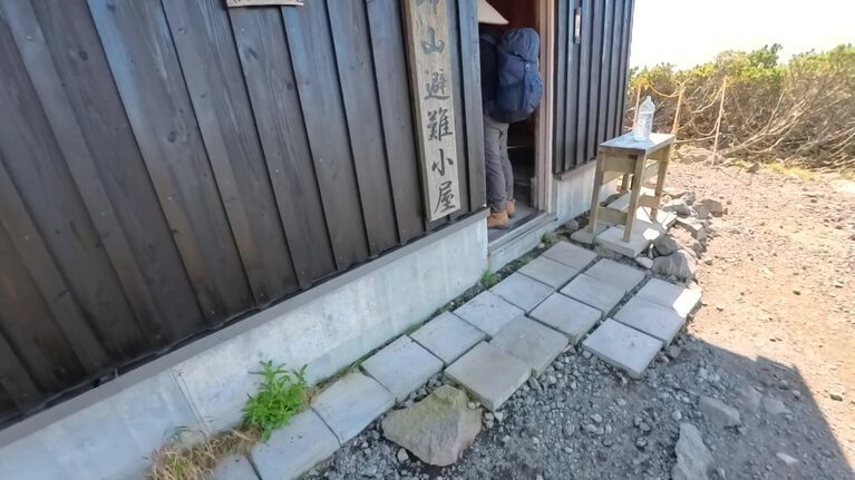 從開始登山經過約5個半小時,抵達了九合目&避難小屋附近。至此積累的疲勞讓腿腳變得像僵硬的棍子,但僅憑着再走一點就能到達避難小屋這個綠洲的動機,繼續前行。